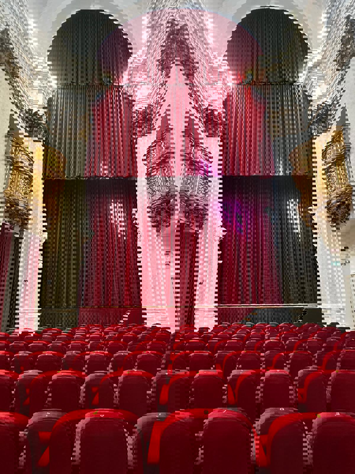 Dietro la facciata grezza si cela un articolato apparato barocco, oggetto del recente restauro, che farà da cornice ai 206 posti a sedere di cui disporrà la struttura sconsacrata, destinata ad ospitare eventi, spettacoli e manifestazioni sotto la gestione del Comune.