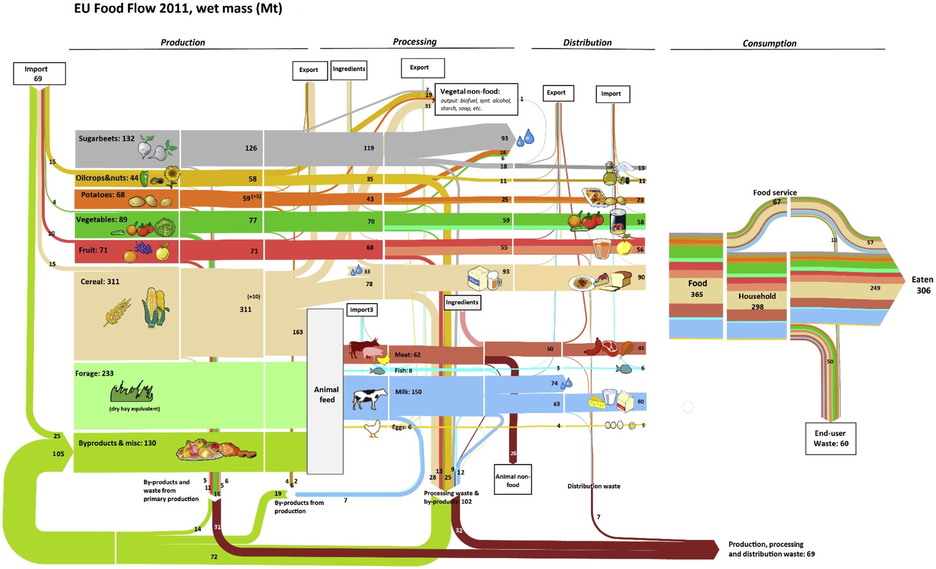 Cornelius Hugh De Witt Diagramma di Sankey dei flussi di prodotti e scarti alimentari lungo la filiera alimentare in Europa nel 2011 In Carla Caldeira, Valeria De Laurentiis, Sara Corrado, Freija van Holsteijn, Serenella Sala, “Quantification of Food Waste per Product Group along the Food Supply Chain in the European Union: a mass flow analysis” , in “Elseiver.” Resources, Conservation and Recycling , vol. 149 (October 2019), modified from VHK, Kemna et al. ( 2017 ) 2019 Immagine digitale Courtesy VHK © VHK for European Commission 2016 Source: VHK, Kemna et al., 2017