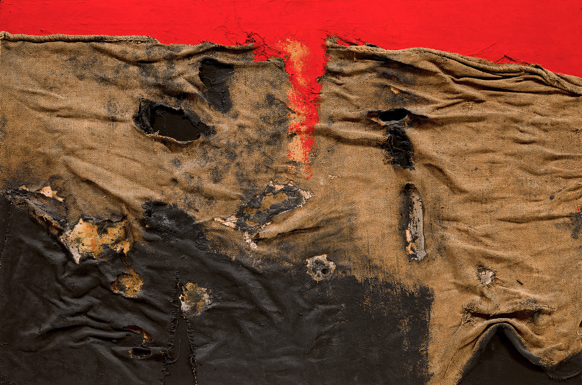 Alberto Burri, «Sacco e Rosso» (1956). Courtesy of ML Matteo Lampertico Fine Art