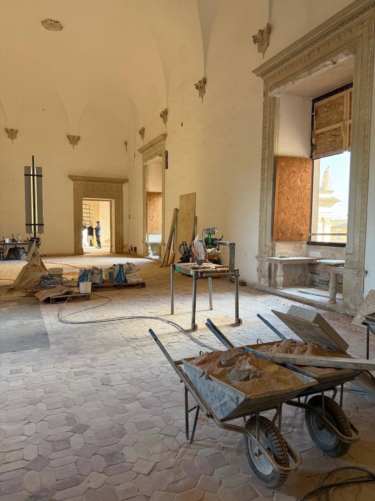 Uno degli spazi dell'appartamento della Duchessa in piena fase di restauro