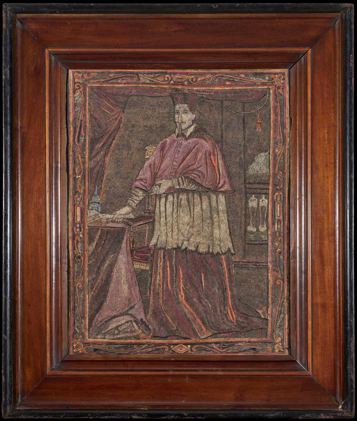 Delicatissimi, questi manufatti sono andati in gran parte distrutti, anche per mano dei conquistadores, ma la pratica non si perse e, in quello che era diventato il Vicereame della Nuova Spagna, i missionari francescani e agostiniani capirono che chiedere ai nativi di creare opere d’arte sacra con questa loro tecnica identitaria avrebbe facilitato il dialogo reciproco e -soprattutto- la loro evangelizzazione. Tanto che le immagini che ci sono giunte sono in grande prevalenza sacre, con protagonisti come l’Immacolata, Santa Rita o altri santi. Rarissimi, invece, i ritratti: uno (1665-66 ca), di «Papa Alessandro VII Chigi», documentato dalla corrispondenza tra Athanasius Kircher e il suo interlocutore in Messico Alejandro Favián, è stato esposto al Mudec, prestato nel 2021 per l’inaugurazione del percorso «Milano Globale. Il mondo visto da qui». E l’unico altro esempio oggi conosciuto (anch’esso databile al 1665-1666 ca.), probabilmente uscito dalla stessa bottega, è stato ora acquisito dal Mudec («dopo lunghe ricerche e una rigorosa due diligence in materia di provenienza, condotta con l’approvazione e la collaborazione dell’Ambasciata del Messico in Italia», precisano dal Museo). Raffigura il «Cardinale Giulio Rospigliosi», Nunzio apostolico in Spagna dal 1644 al 1653, nominato nel 1655 Cardinale Segretario di Stato da Alessandro VII Chigi, di cui sarebbe diventato il successore con il nome di Clemente IX. Che si tratti proprio del Rospigliosi, è provato dal confronto con il ritratto, conservato in Palazzo Barberini a Roma, che gli fece nel 1656 il pittore Giovanni Maria Morandi e che dovette servire da modello per le (eccellenti) maestranze messicane.