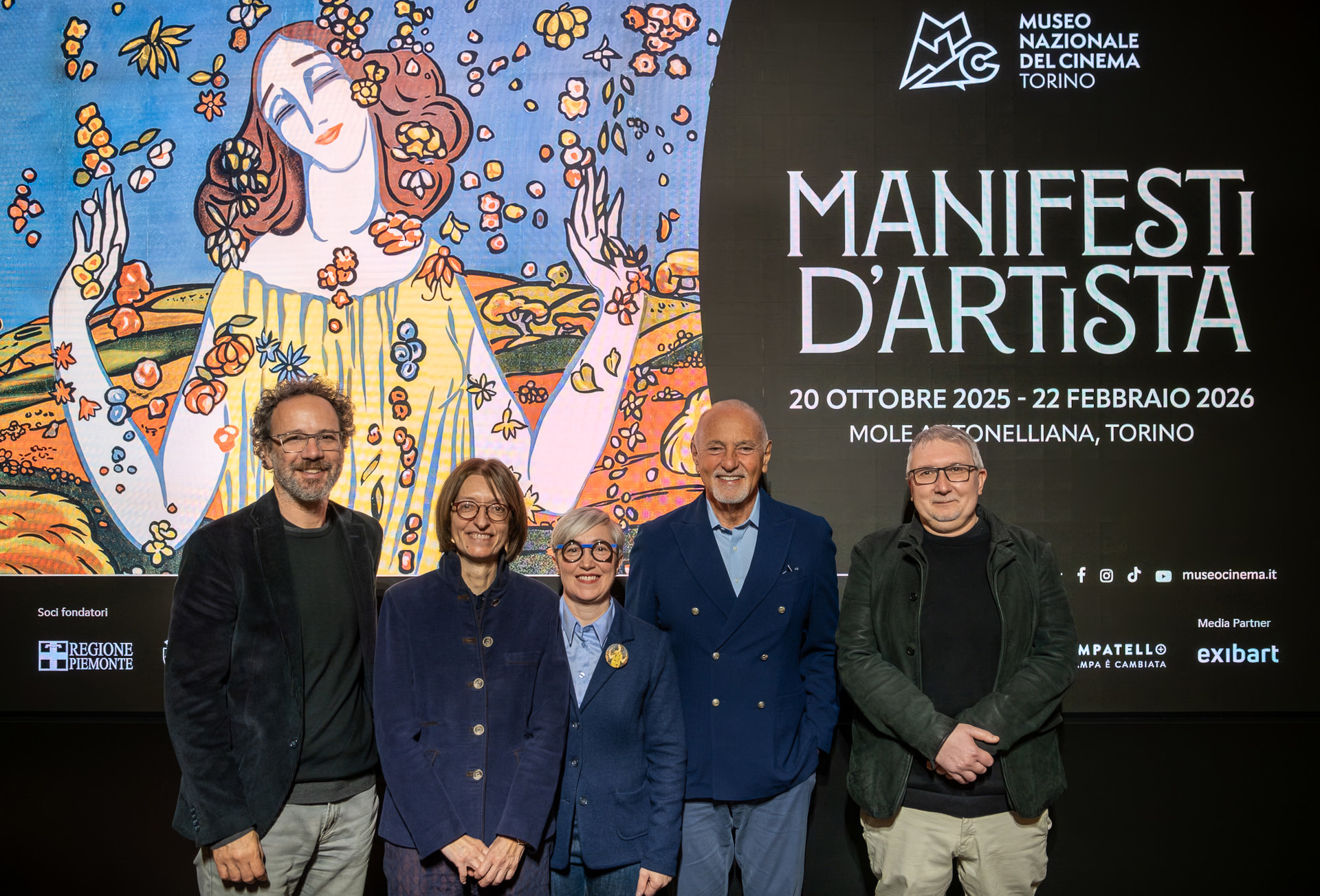 Renato Guttuso, negli anni del dopoguerra, porta il proprio linguaggio pittorico dentro l’immaginario di Riso amaro senza cedere alla tentazione documentaria. Le fotografie di Capa non lo convincono: preferisce costruire una scena mentale in cui Silvana Mangano incarna un’energia non solo erotica, ma sociale. I rossi, i gialli, i verdi non sono scelti per sedurre, ma per rendere percepibile la tensione del lavoro nelle risaie. Suo anche il manifesto di Kaos, film dei fratelli Taviani tratto da Novelle per un anno di Luigi Pirandello. Qui la sua relazione con il cinema cambia, ma non si attenua: i fichi d’India, il mare luminoso, il corvo ripreso a testa in giù diventano un modo per tradurre visivamente ciò che nel film dei Taviani è un tessuto narrativo fatto di novelle, di attese, di presagi. Infine Enrico Baj, chiamato da Rosi per Cadaveri eccellenti, costruisce un’immagine che non semplifica il film ma ne restituisce il clima: figure mostruose, maschere del potere, un generale pluridecorato che apre il corteo. La sua lunga riflessione sui generali e sulla rappresentazione del potere militare si innesta qui in un contesto che ne amplifica il senso. Il manifesto diventa parte del dispositivo critico del film, un contributo interpretativo. Così, senza cesure nette, la mostra compone un’idea di manifesto come luogo in cui il cinema viene continuamente filtrato e interrogato. La fragilità della carta, più delicata persino della pellicola, mette in evidenza quanto questi oggetti custodiscano immagini e modi di guardare. Ogni manifesto è un frammento di un discorso più ampio che lambisce l’evoluzione del linguaggio visivo e il rapporto con le forme della narrazione. «Con “Manifesti d’Artista” il piano zero della Mole Antonelliana si trasforma in una piccola, sorprendente, galleria d’arte – conclude Carlo Chatrian, direttore del Museo Nazionale del Cinema - Da un’intuizione delle conservatrici Nicoletta Pacini e Tamara Sillo è nata l’idea di esplorare le contaminazioni tra la cartellonista e l’arte pura. Se il manifesto nasce per promuovere la visione del film, in questi dieci gioielli, grazie alla visionarietà e creatività di artisti, esso si libera da quel legame e chiede di essere ammirato come opera a se stante. Nella bellezza e delicatezza del tratto, nella potenza della composizione, nell’esplosione die colori ma anche nella loro fragilità, essendo realizzati su una leggerissima carta che evidenzia più ancora della pellicola il passaggio del tempo».