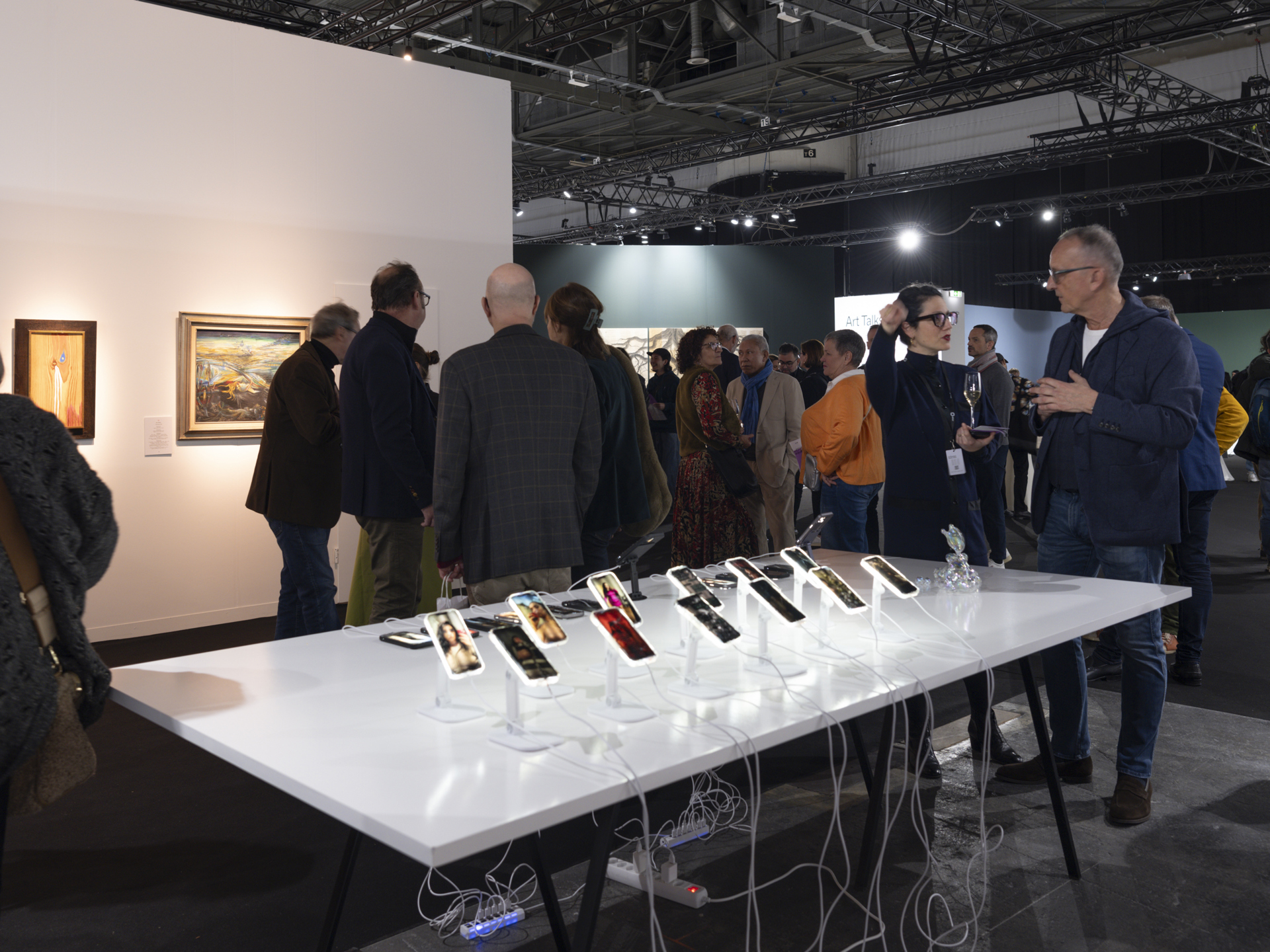 Ad ogni modo, come dicevamo, è la bidimensione che conta: tornando a Semiose, oltre all’ormai consacrato Xie Lei, Premio Duchamp 2025, si punta sulle visioni domestiche e alterate da strati e strati di pittura di Mathieu Cherkit (1982) presente anche da Xippas, con una tavola imbandita in una prospettiva scorciata: le due gallerie, proprio in occasione di Art Genève, hanno annunciato (congiuntamente con la Miles McEnergy Gallery di New York) la rappresentazione del pittore ai tre angoli del mondo: Stati Uniti, America Latina e Asia. Un nome, per chi ancora non lo conoscesse, da tenere ben più che d’occhio. Semiose, però, partecipa anche alla sezione gli stand «solo», e anche in questo caso non sbaglia: in scena, qui, c’è Fiza Khatri (1992) che a sua volta visioni casalinghe di momenti silenziosi, introspezioni queer, pescando in quell’immaginario liminale, estremamente contemporaneo, situato tra intimità innocente e voyeurismo.