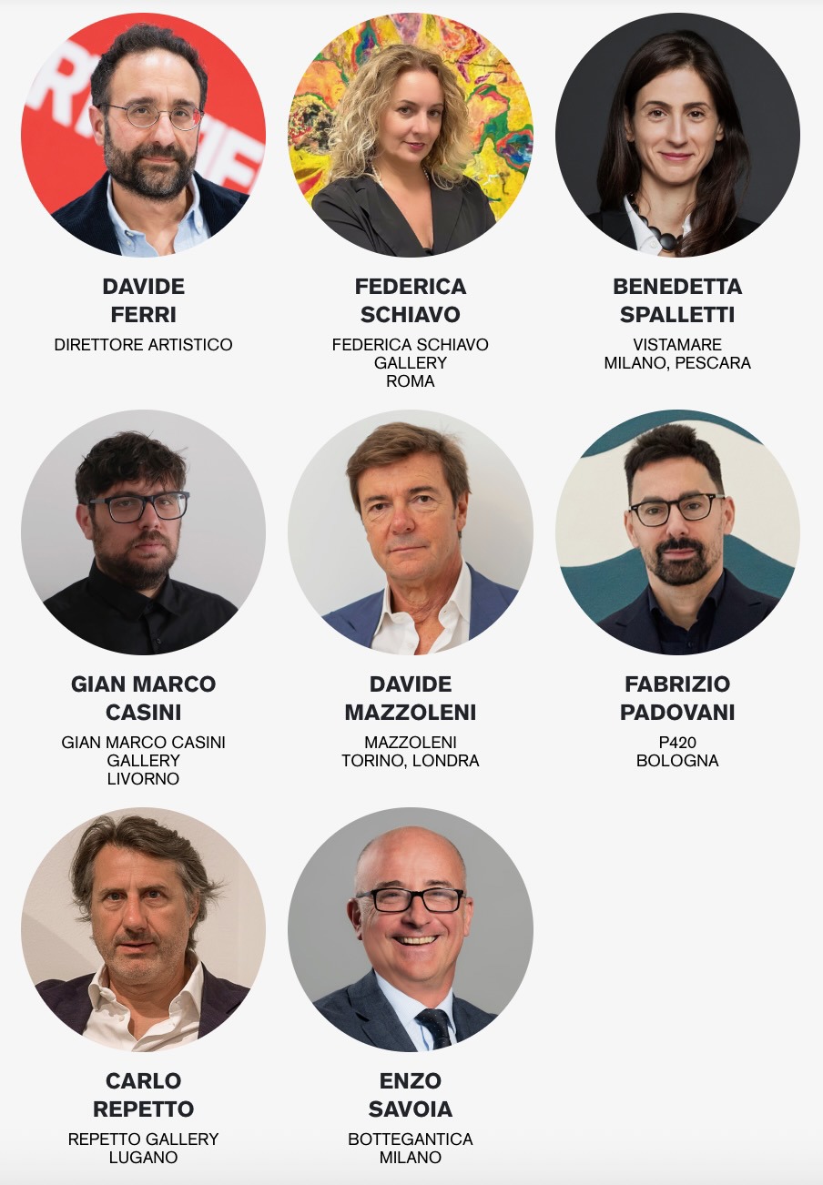 Il comitato di selezione si amplia e si rinnova, per accogliere voci differenti e visioni complementari. Oltre a Federica Schiavo, Fabrizio Padovani e Carlo Repetto, entrano Benedetta Spalletti, Gian Marco Casini, Davide Mazzoleni ed Enzo Savoia. Insieme, formano un gruppo che incarna la varietà del sistema galleristico nazionale e internazionale, e contribuisce a definire una proposta fieristica di alto profilo.