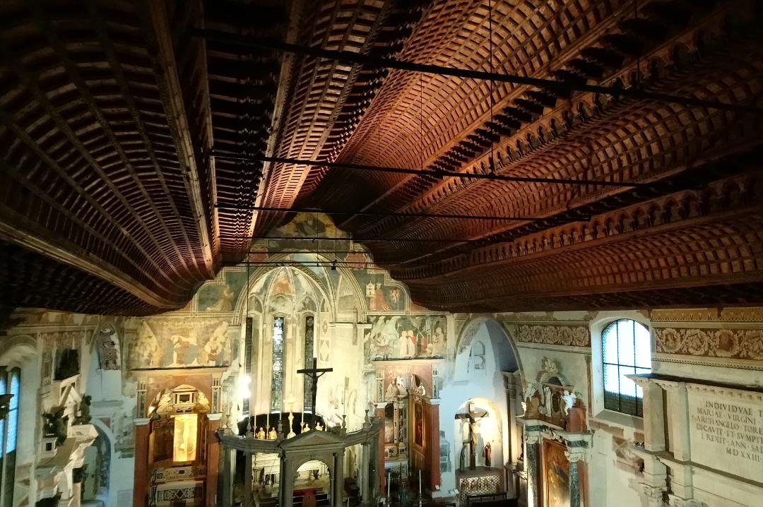 Tra gli altri arredi preziosi, la Chiesa di San Fermo Maggiore racchiude un raro soffitto ligneo a carena di nave rovesciata. Una pubblicazione racconta la storia dell’edificio e dell’intervento