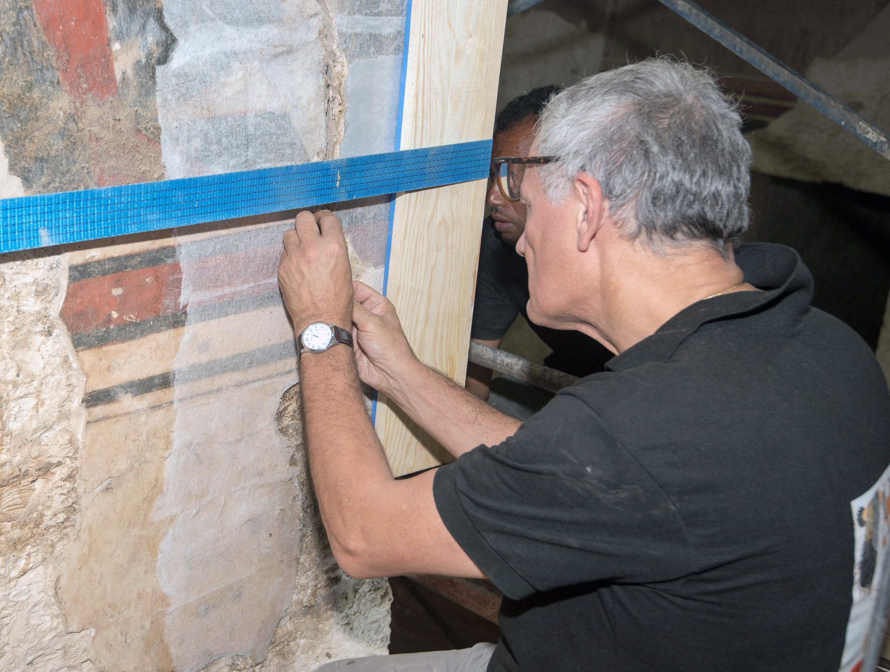 La tomba era già nota dall’epoca della spedizione di Bonaparte in Egitto. Era stata depredata e i pipistrelli vi avevano dimorato per secoli. Il loro guano aveva coperto di uno strato di concrezioni coriacee le pitture, di una bellezza e precisione straordinarie. Rimuoverle in condizioni di sicurezza, sia per il monumento che per gli operatori, si è dimostrata senza dubbio la sfida principale. Insieme ovviamente al consolidamento degli intonaci, lisci e levigati come lastre di marmo. Un grosso problema ha rappresentato uno dei sei pilastri della camera funeraria. Per la sua messa in sicurezza e consolidamento si è dovuto ricorrere all’aiuto di ingegneri che hanno calcolato le modalità dell’intervento conclusosi con successo.