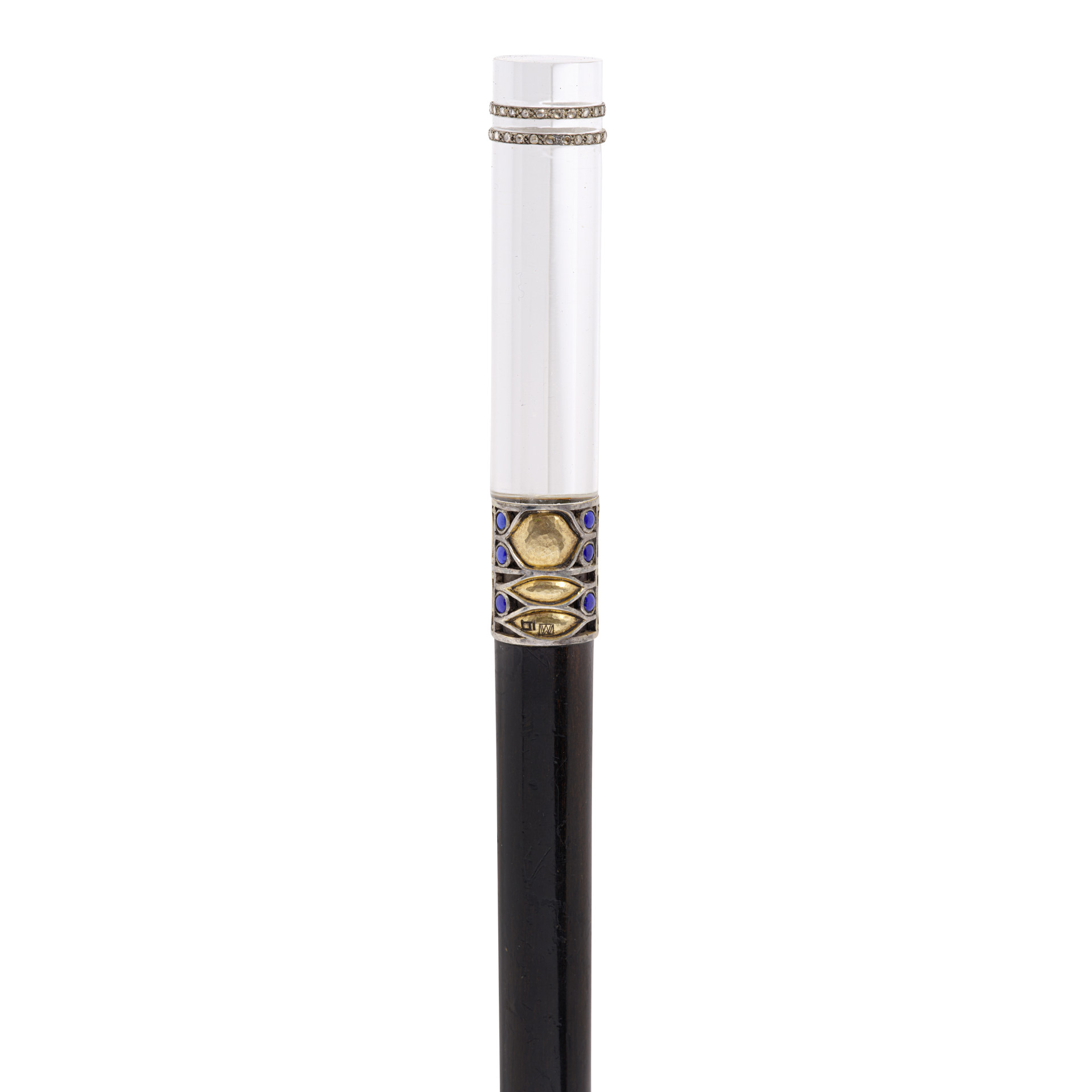 Bastone austro-ungarico secessionista con diamanti e lapislazzuli incastonati, argento standard 800 e rivestimento in argento dorato, cristallo di rocca, 1907 circa, stimato tra i 5mila e gli 8mila dollari. Courtesy of Bonhams