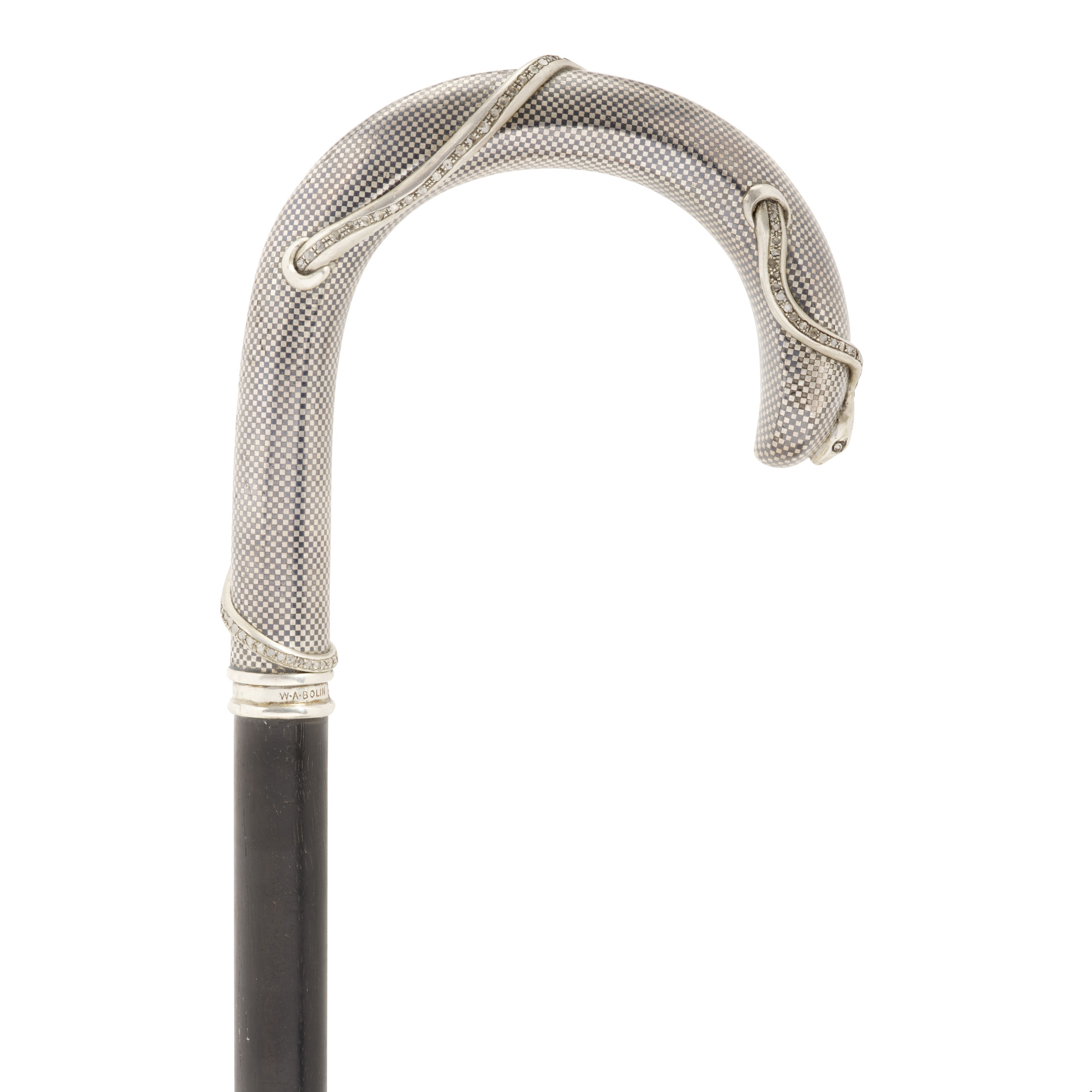 Bastone svedese con inserto a forma di diamante 800 Standard Silver Niello Snake Cane,1919 circa, stimato tra i 5mila e gli 8mila dollari. Courtesy of Bonhams