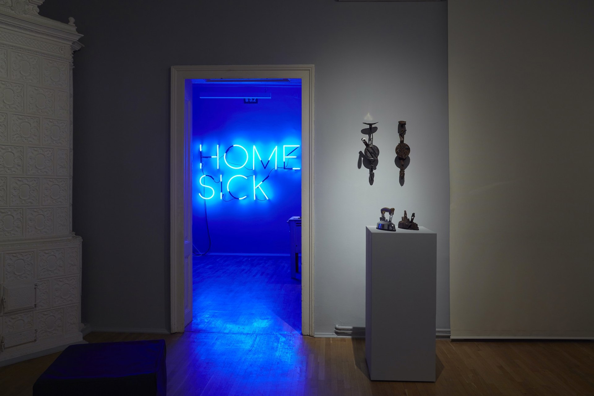 Veduta dell’installazione della mostra «Wet Snow» al /SAC di Bucarest, dal 2 ottobre al 30 novembre. In fondo, «Homesick», di Yael Bartana, a destra «Großelternparadoxon», di Philip Topolovac