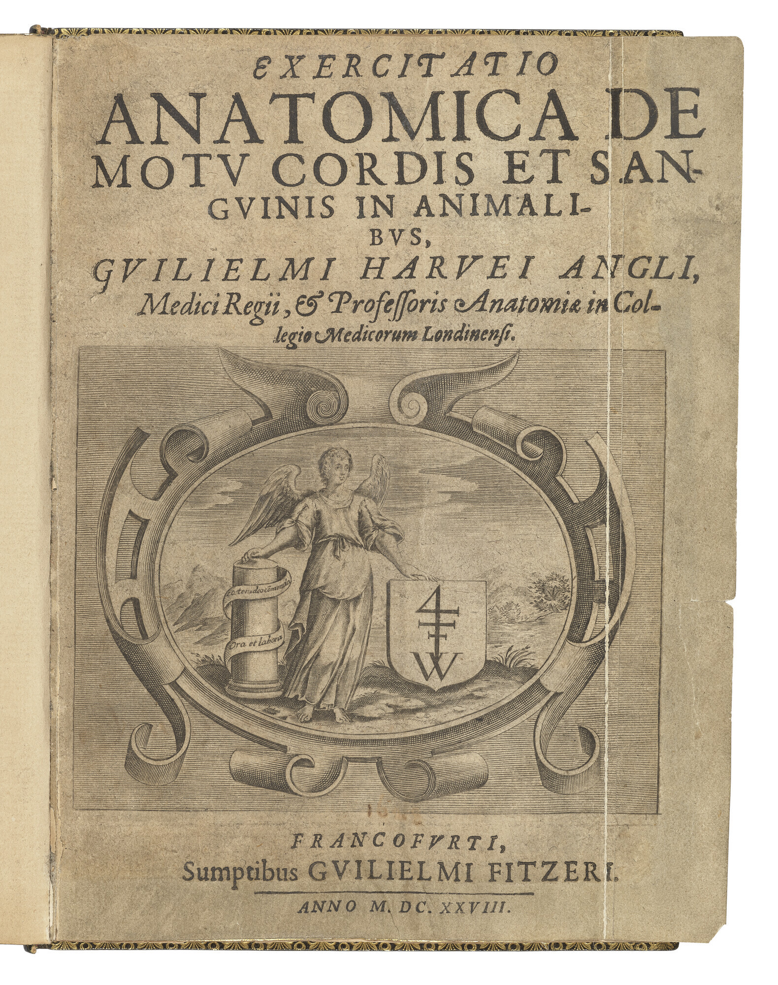 Exercitatio anatomica de motu cordis et sanguinis in animalibus (1628) di William Harvey. Courtesy of Christie’s
