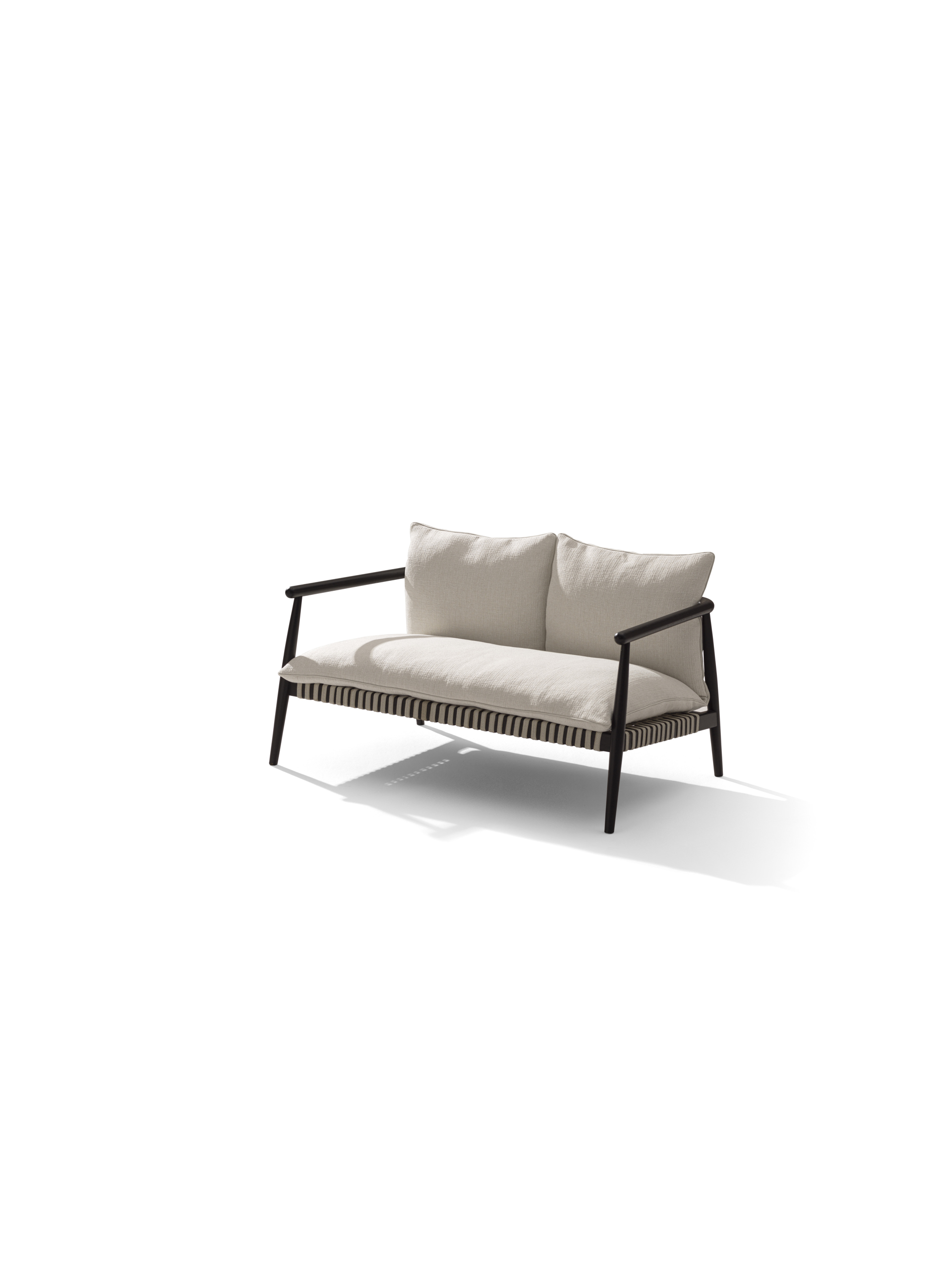 Un capitolo significativo della rassegna è dedicato alla migrazione degli interni verso l'esterno. Non si tratta di un semplice adattamento materico, ma di una traduzione culturale. «Karin Outdoor», progetto di Setsu e Shinobu Ito, ne è l'esempio più vivido. La struttura in legno massello di iroko e l'intreccio eseguito a mano recuperano una gestualità artigianale che sembra provenire da un tempo lontano, ma che trova nel segno contemporaneo la propria ragion d'essere. L'elemento tattile diventa qui il linguaggio principale per descrivere un giardino che ha la stessa intensità emotiva di un salotto. In questo scenario si inserisce «Milos», opera di Marc Sadler, che rompe lo schema tradizionale della seduta per proporre una configurazione a isola. Con il suo schienale mobile, «Milos» è un organismo conviviale aperto, progettato per essere riconfigurato continuamente in base al dialogo tra le persone e l'ambiente circostante.