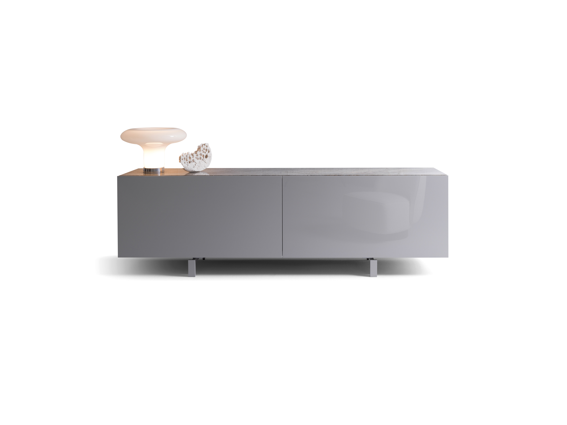 La vera novità di questa edizione è però l'incursione di Desirée nel mondo dei contenitori, un ampliamento che completa l'universo progettuale del brand. I modelli «Cross», «Garbo», «Teatro», «Delineo» e «Silenzio» sono trattati come piccoli volumi architettonici, ognuno con un proprio carattere semantico. Se «Cross» rievoca la profondità delle bow-window attraverso un gioco di bisellature e piani in marmo che lavorano sul rapporto tra pieno e superficie, «Teatro» esplora la fluidità del gesto attraverso ante complanari che scorrono come quinte, trasformando la percezione del mobile da solido a scenario. «Delineo», al contrario, sceglie la strada della sottrazione, eliminando ogni elemento superfluo per concentrarsi sulla purezza del blocco, dove una gola inclinata funge da maniglia invisibile.