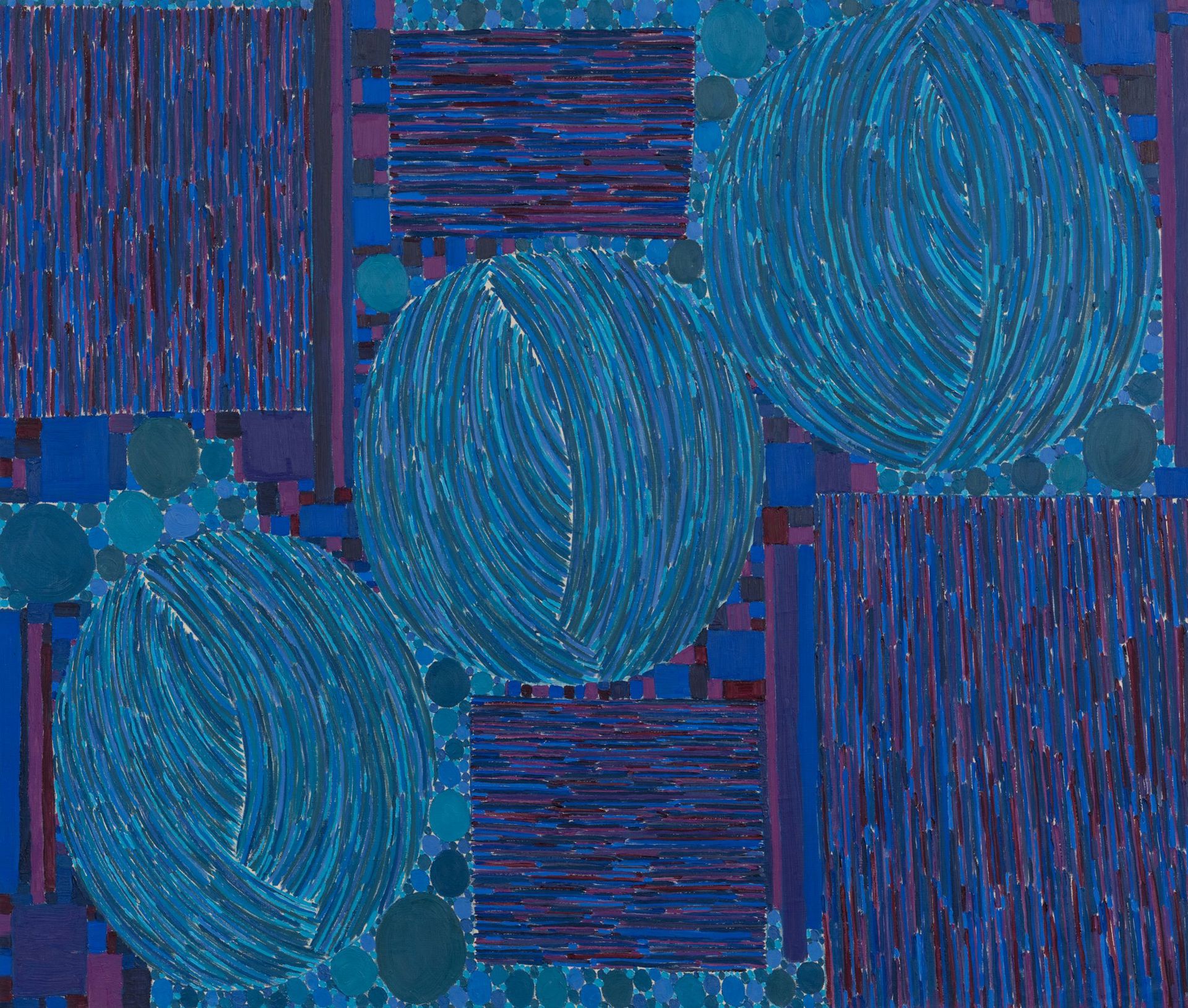 Lynne Drexler (1928-1999) Square Rigidty [Sic], 1976 Signed, titled, and dated on the verso: "Lynne Drexler / Square Rigidty / 76" Oil on linen 42 1/2 x 47 1/4 inches 108 x 120 cm © The Lynne Drexler Archive Courtesy Berry Campbell, New York