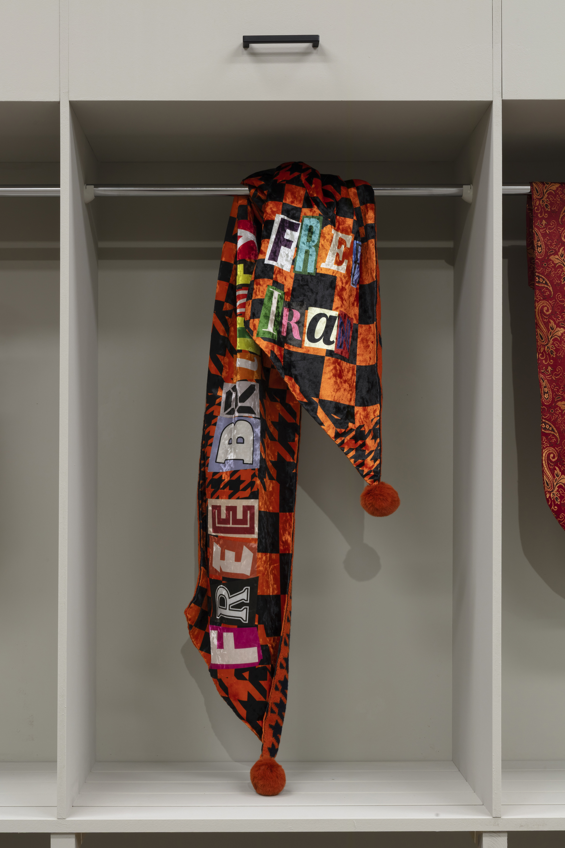 Per farlo, si avvale di quelli che definisce vêtements-images: abiti non pensati per essere indossati, ma per essere guardati — potenziali involucri per corpi che diventano opere. Dispositivi attraverso cui l’artista utilizza la stampa su tessuto e l’assemblaggio di materiali diversi, facendo del capo e della sua storia un supporto visivo e un veicolo di significato.