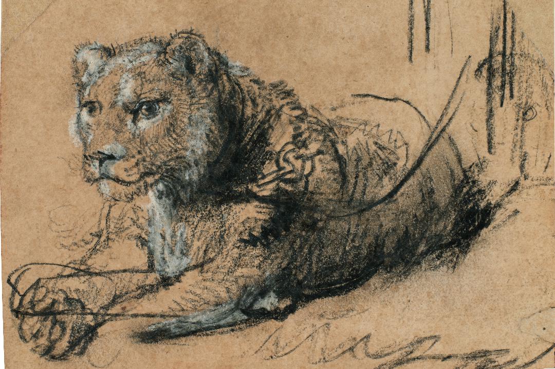 Eseguito quando l'artista era poco più che trentenne e già all’apice della sua carriera, ad Amsterdam, il disegno raffigura l'animale colto di tre quarti e con un collare al collo