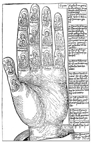 Ci sono poi figurazioni fatte per fare impazzire i fedeli più devoti come le stampe del tedesco Daniel Hopfer (1471-1536) che, costeggiando la riforma luterana, crea una sorta di tabellone con una spiegazione a fumetti del Credo così ingarbugliata e farraginosa da far pensare con simpatia alle maledizioni di Vasari contro i tedeschi e la loro arte. E non è meno inquietante la cinquecentesca «Mano mnemotecnica per memorizzare gli articoli del Credo» fatta apposta per scolari che non hanno studiato e si scrivono tutto sulle dita. Resta il fatto che questi lavori che illustrano il Credo hanno una forte valenza didattica e devozionale, in quanto aiutano i fedeli (o almeno ci provano) a interiorizzare i dogmi della fede cristiana.