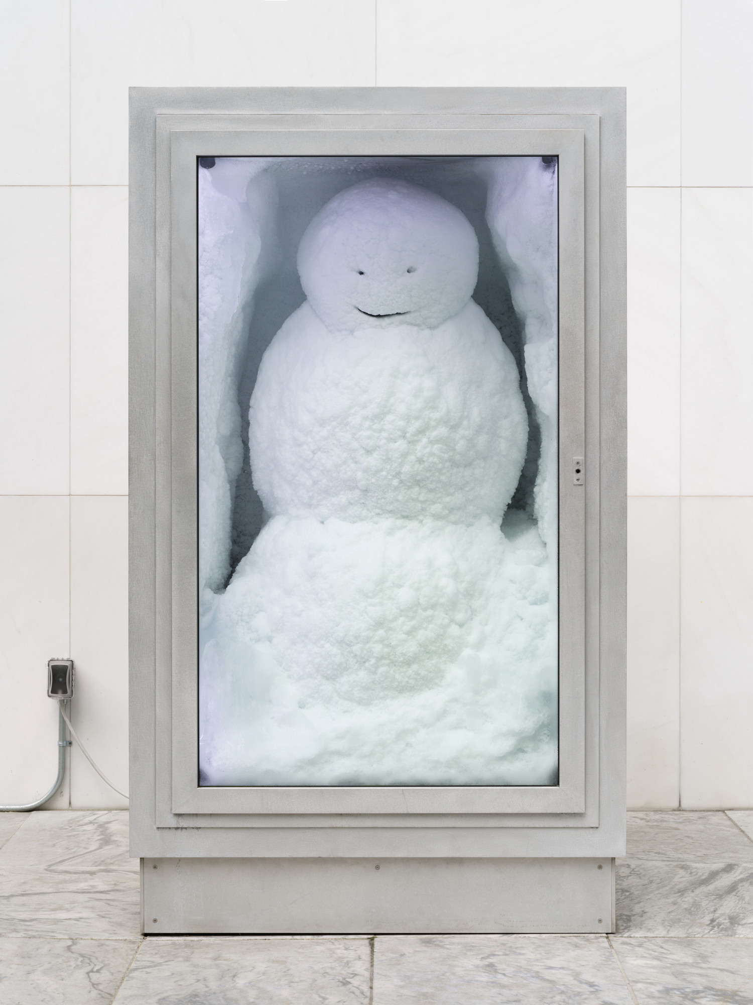 Leggi i suoi articoliSnowman è una delle opere più emblematiche di Peter Fischli e David Weiss, realizzata nel 1987, nel pieno della loro riflessione sulla precarietà, sull’assurdo e sulla natura effimera delle cose. L’opera raffigura un pupazzo di neve collocato all’interno di uno spazio espositivo, costruito secondo l’immaginario infantile e universale del “snowman”, ma destinato inevitabilmente a sciogliersi. Il lavoro appartiene a una serie di opere in cui il duo svizzero utilizza materiali deperibili e processi temporali reali, introducendo il tempo come agente attivo dell’opera stessa.
