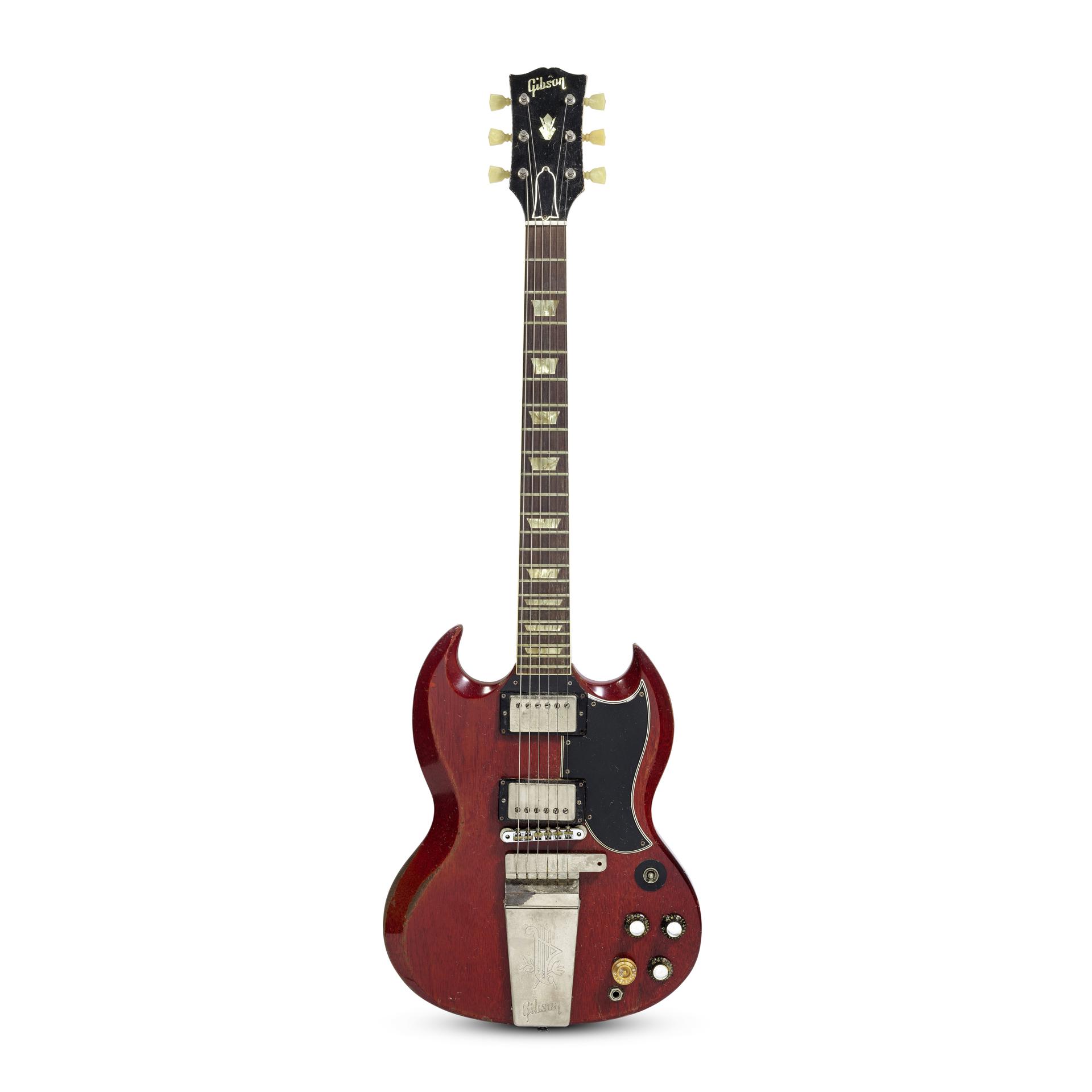 Chitarra elettrica Gibson SG Standard ampiamente utilizzata negli album Damned Damned Damned e Music For Pleasure, 1964. Stima: 12mila - 15mila sterline. Courtesy of Bonhams