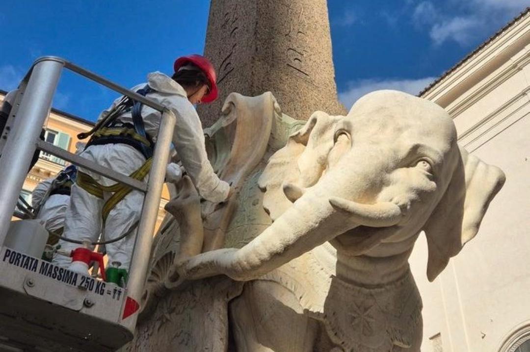 A nove giorni dal distacco della zanna sinistra, la Sovrintendenza Capitolina con la collaborazione della Soprintendenza Speciale di Roma è intervenuta sul marmo di piazza della Minerva