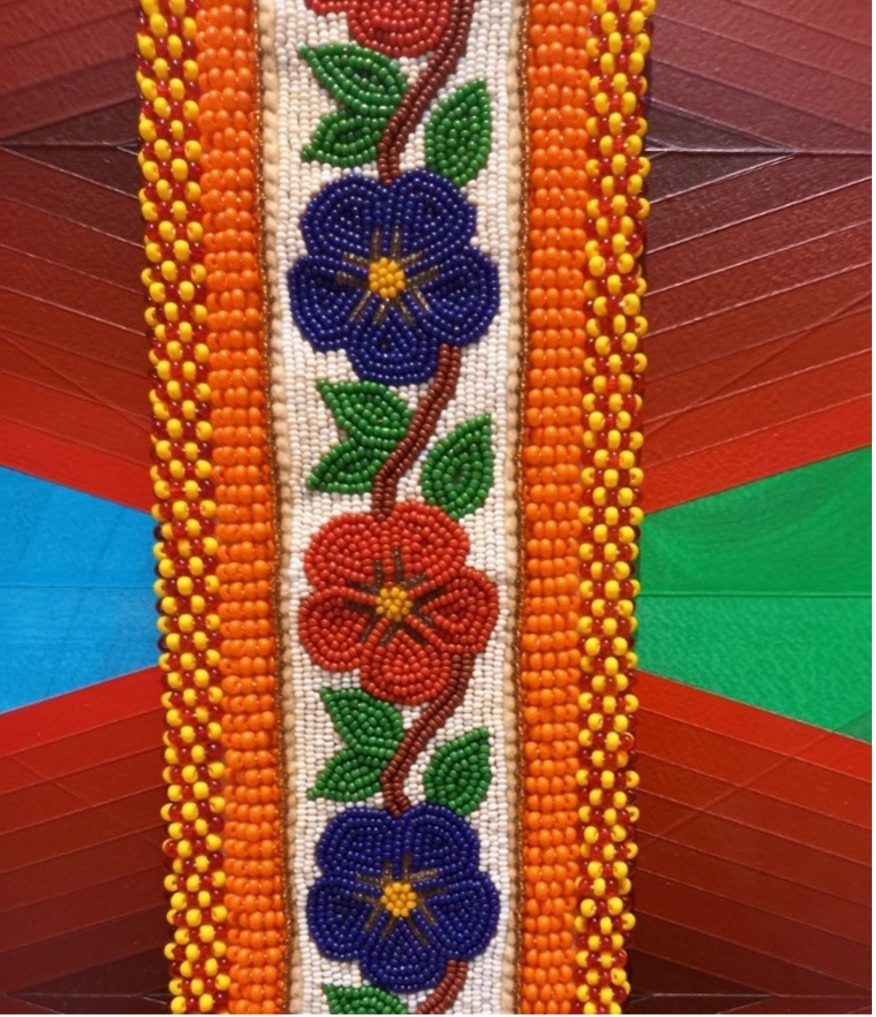 Nelle due opere sopra citate gli oggetti sono, rispettivamente, una cintura o striscia con fiorellini (XXI secolo) e una coppia di sacchetti con mazzolini fioriti (1920-50 ca) entrambi con un ricamo di perline di vetro. Acquistati in mercatini dallo stesso Gibson, questi manufatti di autore ignoto (del Columbia River Plateau / Northern Plains / Western Great Lakes) sono inseriti nel dipinto in modo da poter essere sostituiti nel caso un avente diritto ne faccia richiesta.