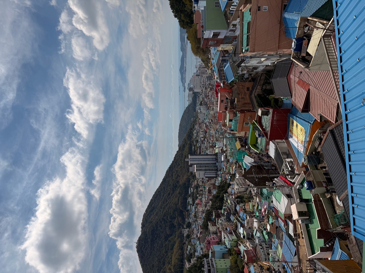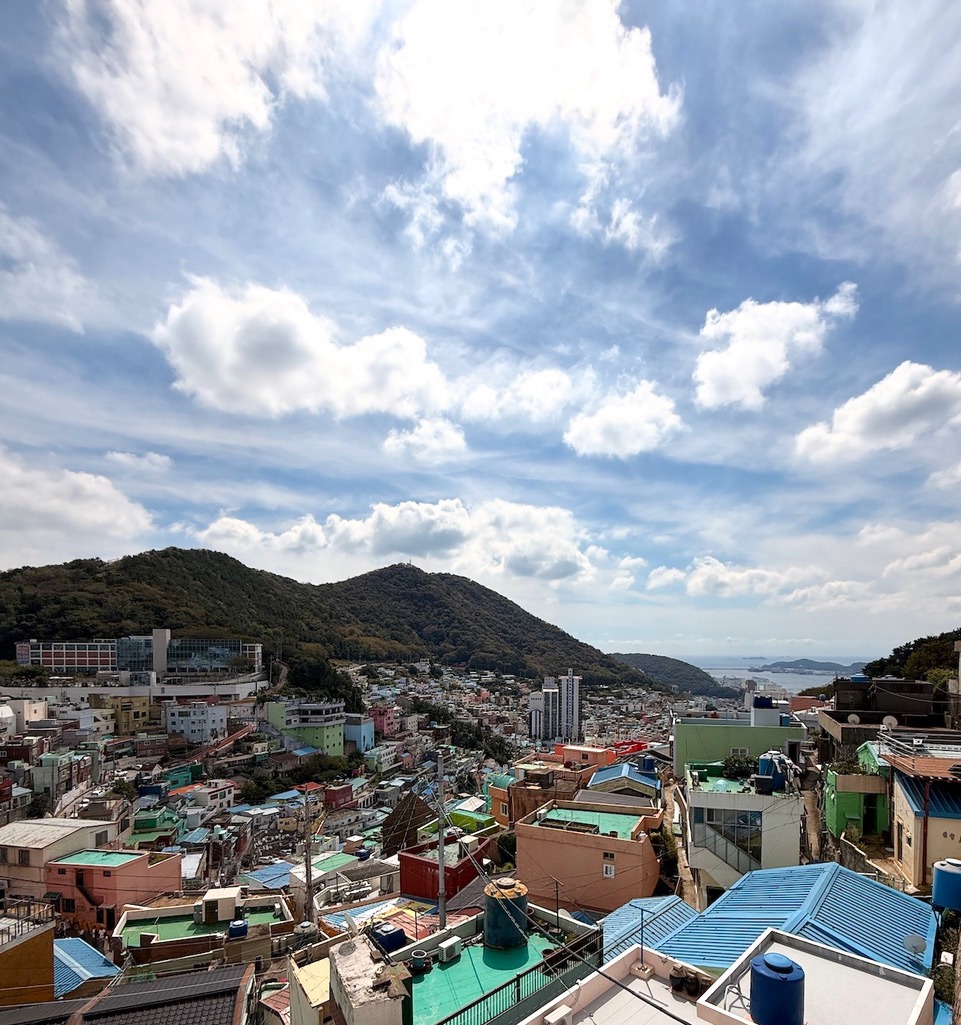 Questo luogo, che sorge sulle colline del grande porto marittimo coreano, è strettamente legato nelle sue origini alla Guerra di Corea. Il villaggio nacque infatti come rifugio per i profughi in fuga dal conflitto, soprattutto per le persone che provenivano dal Nord del Paese, e le case colorate che oggi definiscono il profilo originale di quest’area tanto affascinante, che noi guardiamo con un misto di tenerezza e meraviglia, un tempo erano baracche, erette dai rifugiati sulle ripide colline di Busan a file ordinate, le une sulle altre, creando la caratteristica struttura a terrazze del villaggio.