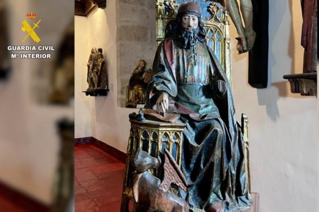 In legno policromo e dorato, il rilievo raffigurante «San Luca» e attribuito al grande scultore Gil de Siloé era stato rubato nel 1979 da una chiesa della Castiglia e León. Riemerso in un'asta del 2021, è stato restituito grazie al fiuto di due antiquari e a un’operazione internazionale