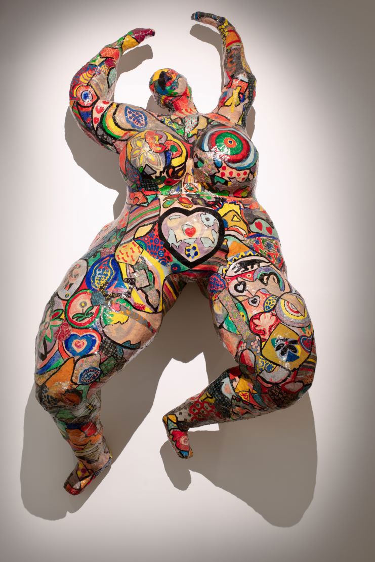 Niki De Saint - Phalle 1930 - 2002 Lili ou Tony , 1965 Résine polyester peinte, tissu, grillage métallique et collage P ainted polyester resin, fabric, wire mesh and collage 236.8 x 130.5 x 79 cm (GP SAPN - 001.18) Photo : Arthur Péquin © 2025, ProLitteris, Zurich