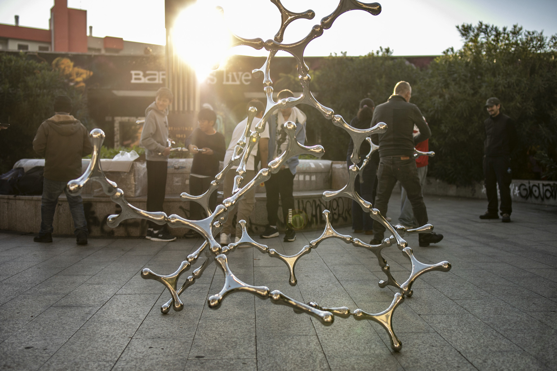 La scultura è nata coinvolgendo i ragazzi che frequentano il Barrio’s, che hanno visitato lo studio milanese dell’artista e frequentato i suoi laboratori per conoscere da vicino il processo con cui Cecchini crea queste forme, dall’apparenza acquea per la lucentezza del materiale (acciaio inox lucidato) e per i volumi arrotondati, come fossero grandi gocce, le cui unità modulari sono strettamente interrelate fra loro in una rete «organica» in continua espansione, efficace metafora delle relazioni che legano gli individui all’interno di una comunità: sono moduli singoli, quelli delle opere del ciclo «Waterbones», che, come gli individui, trovano il loro significato solo all’interno di una struttura interrelata fondata (auspicabilmente) sul reciproco sostegno. Ma non basta: per avvicinare la cittadinanza del quartiere ai linguaggi del contemporaneo, aprendo loro una via d’accesso altrimenti sbarrata, questa iniziativa prevede delle visite a musei milanesi votati all’arte di oggi o del XX secolo, da Fondazione Prada ad Hangar Bicocca e Pac-Padiglione di Arte Contemporanea di Milano, dal Museo del Novecento alle Gallerie d’Italia Milano, dallo Studio Pomodoro al Museo Francesco Messina, alla collezione Boschi Di Stefano, oltre che visite a mostre e partecipazione a spettacoli teatrali e di danza contemporanea della rassegna Fog di Triennale Milano e della rassegna Danae. Spiega Renata Cristina Mazzantini: «Con il proprio progetto, selezionato da “Il Museo Rigenera”, la Galleria Nazionale d’Arte Moderna e Contemporanea rafforza la sua missione di museo promotore della creatività del presente, rivolgendosi in particolare alle periferie e ai giovani. Sviluppando la pratica della “socially engaged art”, pensata come strumento di rigenerazione urbana, di promozione della cittadinanza attiva e della coesione sociale, la Galleria arricchisce anche il proprio patrimonio con l’acquisizione di una preziosa opera d’arte del maestro Loris Cecchini».