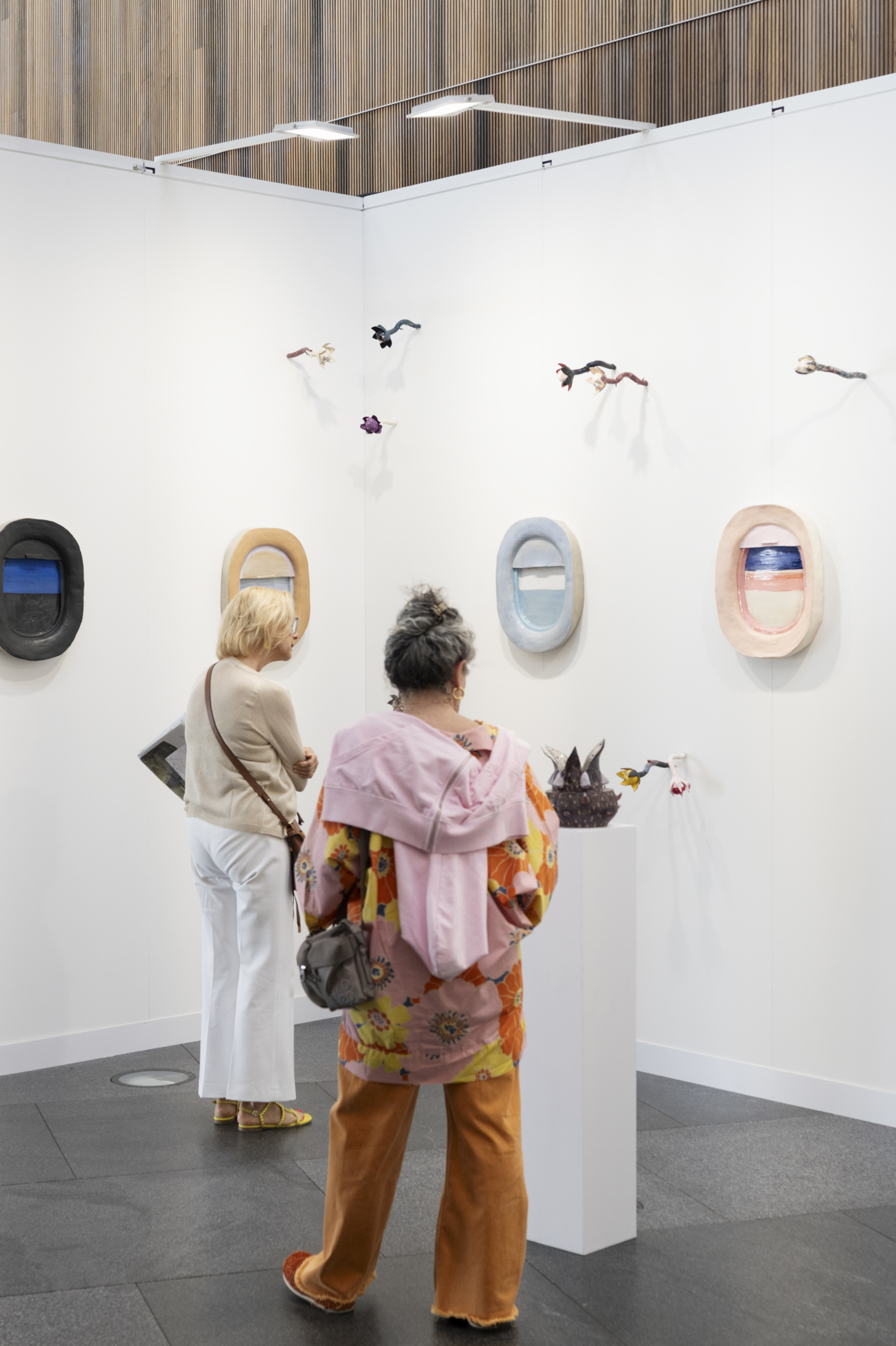 Leggi i suoi articoliOgni nuova storia nasce da un'immagine. Quella di Art Cologne Palma Mallorca (9-12 aprile 2026) inizia dagli oblò aerei di C.J. Chueca, esposti da Kates-Ferri Projects, in apertura di percorso, che riportano il visitatore al viaggio appena concluso, quello che l'ha condotto fino all'isola Baleare dove la fiera tedesca ha deciso di espandersi. I panorami all'interno dei pittorici finestrini sembrano un proseguimento di quelli attraversati in volo, gradati dal rosa all'azzurro a seconda della rifrazione della luce su mare e cielo. Una questione che rimane attuale in tutto il Palau de Congressos, dove è in scena la manifestazione, completamente inondato dal libero accesso che le ampie vetrate garantiscono al sole.