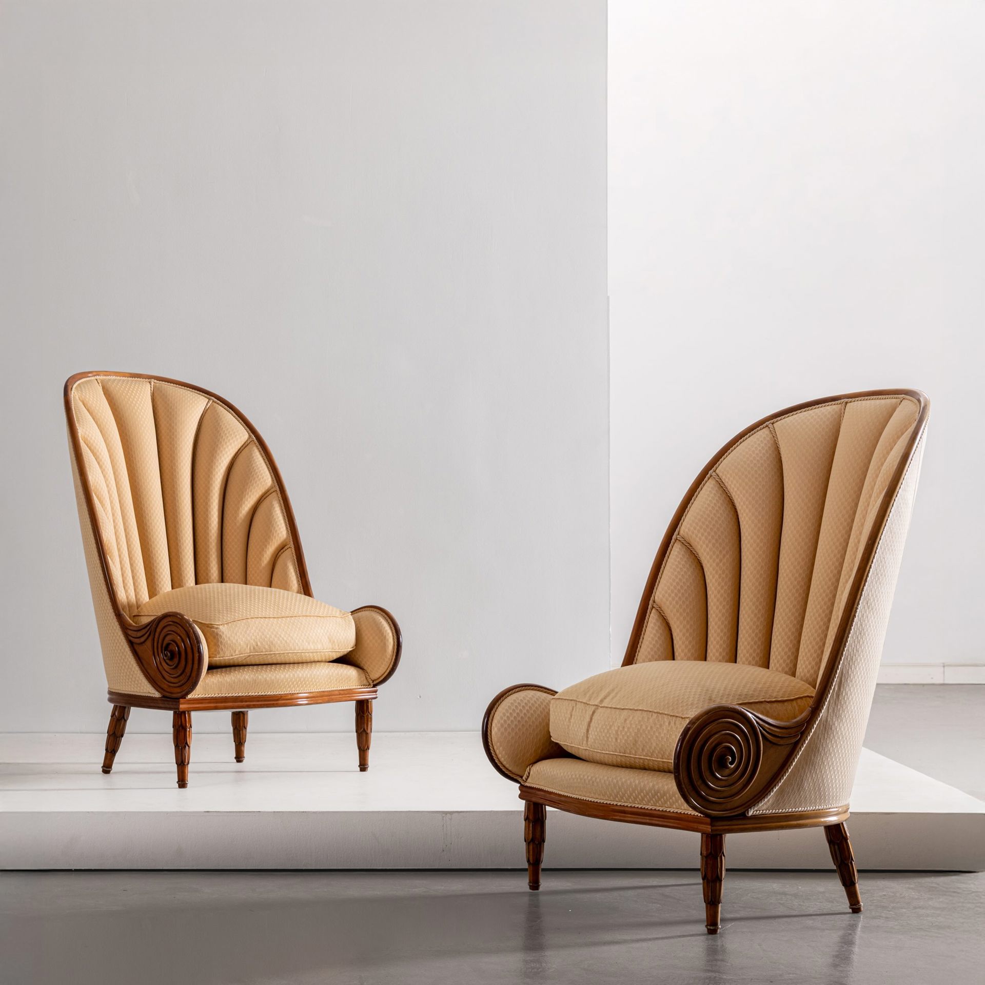 Paul Iribe, Coppia di poltrone mod. Nautilus. Esecuzione Annibale Colombo, 1970 ca. Courtesy of Wannenes