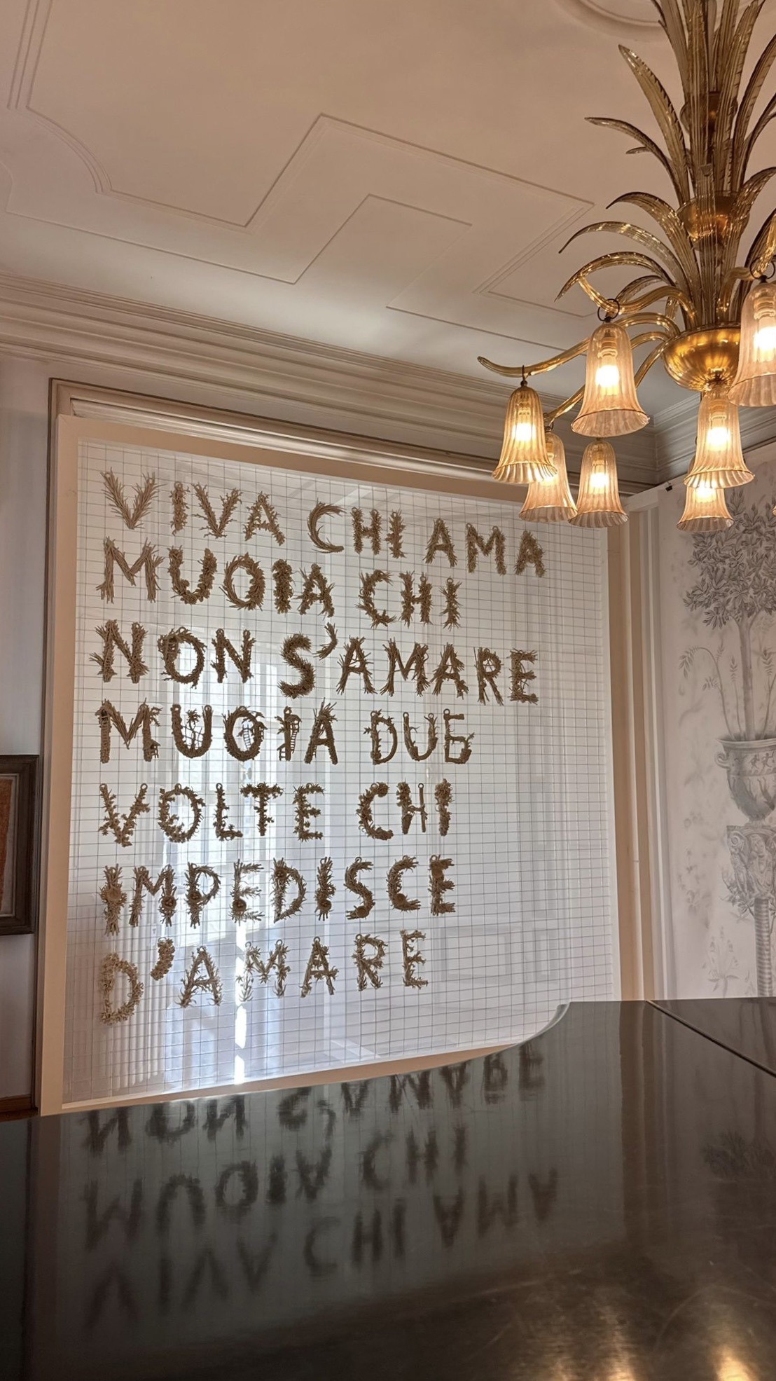Ma non basta: dallo stesso giorno, nella Casa Museo Boschi Di Stefano, in via Jan 15 (uno scrigno d’impagabile bellezza, per l’architettura di Piero Portaluppi e per la magnifica collezione che Antonio Boschi e la moglie Marieda Di Stefano seppero comporre, riunendo veri capolavori dei maestri del ’900), Cibelli presenta una sorta di inno all’amore coniugale nella mostra «Viva chi ama!» (fino al 14 dicembre), curata da Gianfranco Maraniello, direttore dell’Area Musei di Arte moderna e contemporanea di Milano, cui Casa Boschi Di Stefano fa capo. Per l’esposizione, realizzata grazie al contributo di Acacia-Associazione Amici Arte Contemporanea Italiana, l’artista ha creato una serie di lettere in biscuit che paiono fatte di piccoli sterpi e che compongono frasi dedicate agli affetti, accostandole a suoi disegni. «Un’arte coraggiosamente sentimentale, quella di Diego Cibelli, nota il curatore Maraniello, capace di reinventare tecniche della tradizione in modo sempre ispirato dai contesti espositivi». E testimone di un «saper fare» che sembrava ormai espulso dai linguaggi dell’arte.