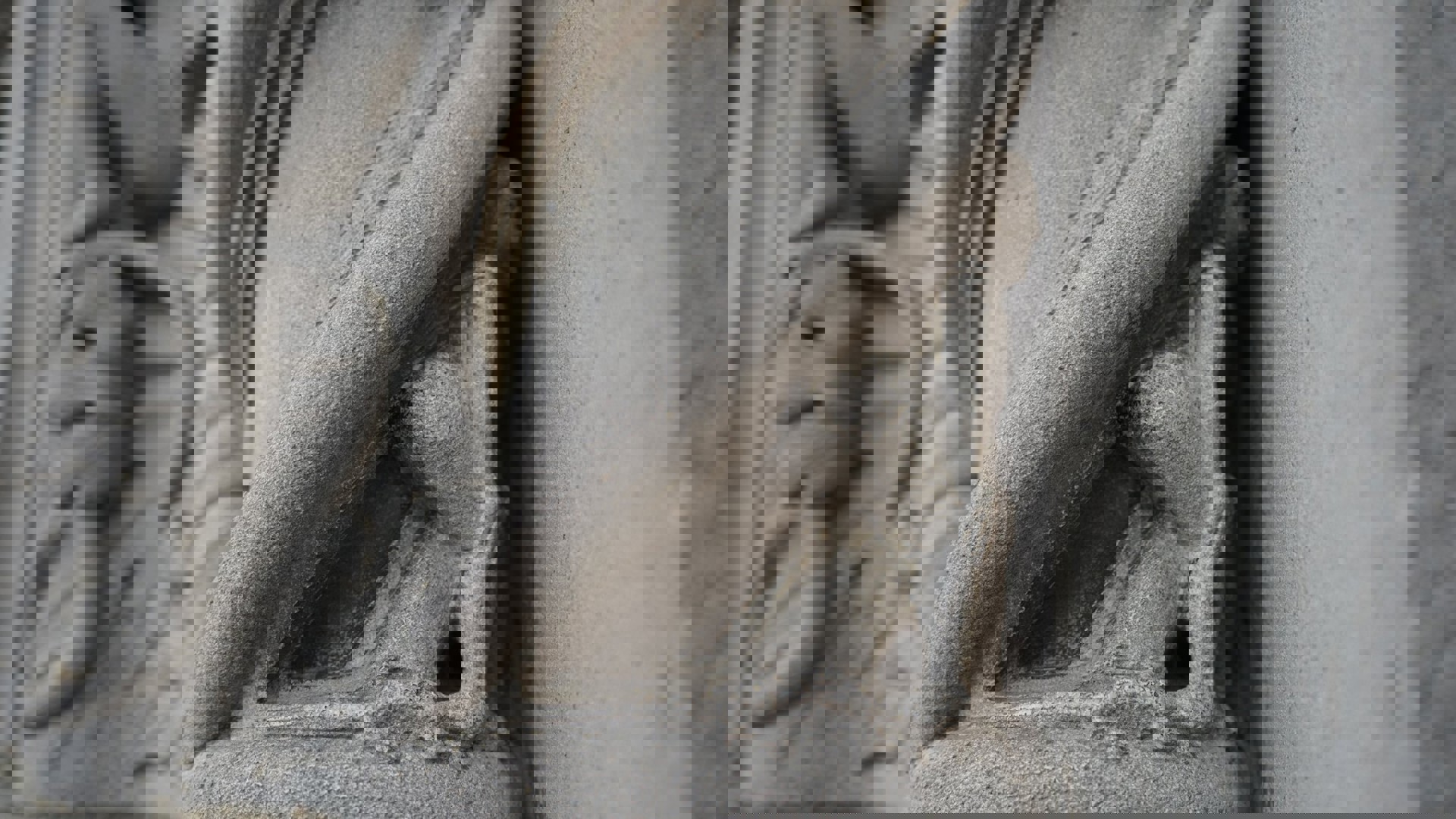 Monaca alla base della colonna esterna di sinistra del portale di San Fortunato, Todi
