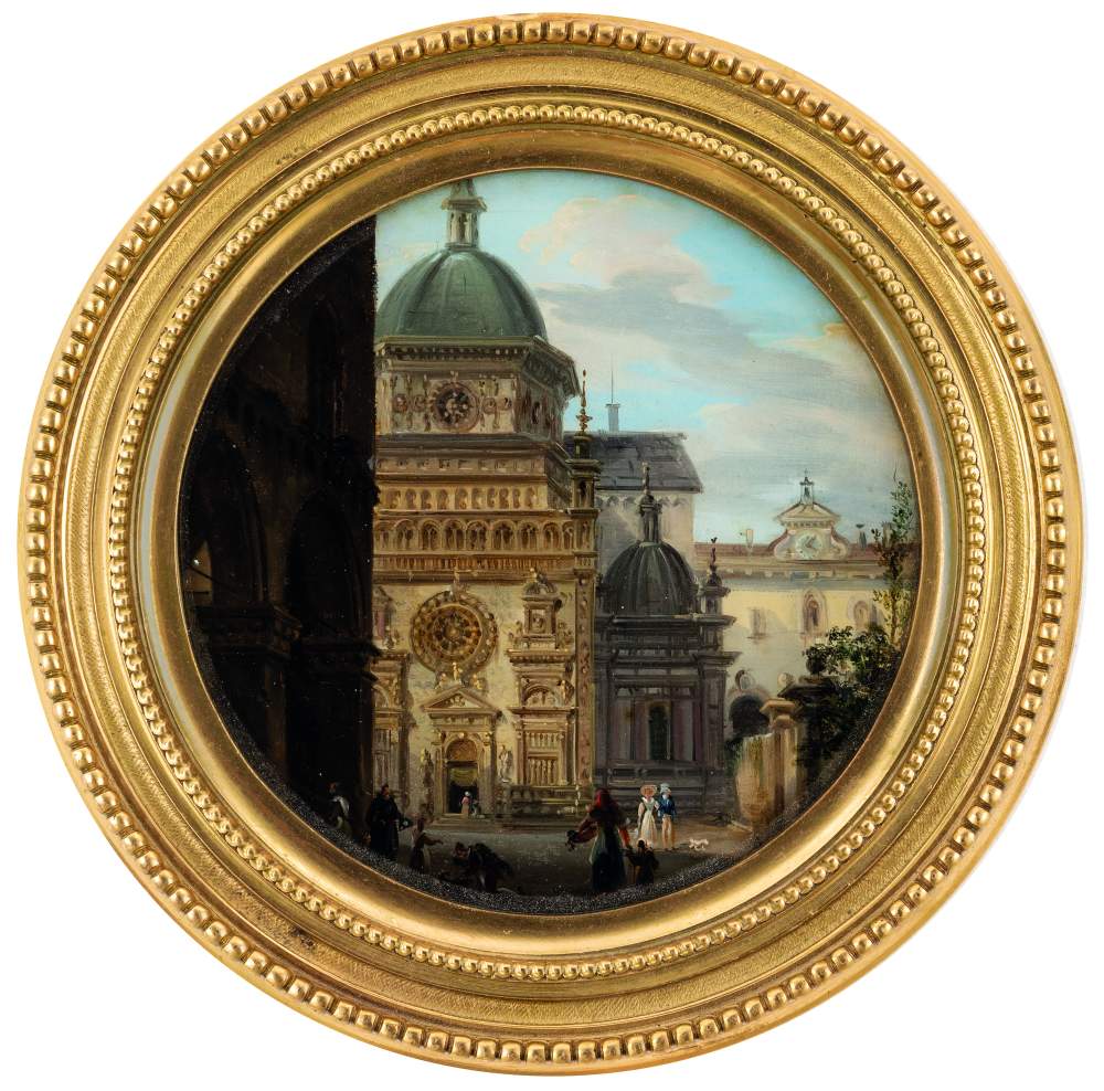 La capacità di Migliara di rappresentare scenografiche architetture prospettiche unite alla narrazione di scene di vita quotidiana trova il suo culmine nelle vedute urbane realizzate fra gli anni Venti e Trenta dell’Ottocento. In asta ne costituiscono esempio «Interno del Santuario di Santa Maria dei Miracoli presso San Celso» (stima 16-20mila euro), in cui l’imponente architettura interna della chiesa è animata da raggruppamenti di piccole figure rese con vivacità e grande minuzia descrittiva.