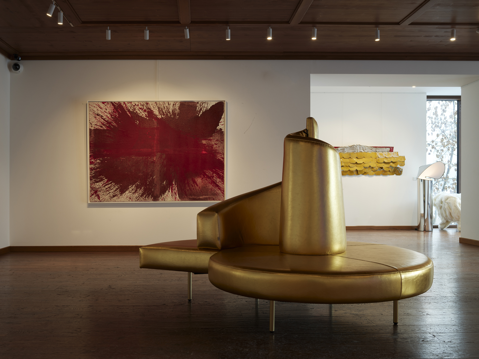 A Cortina d’Ampezzo, Casa Italia sceglie la sede di Farsettiarte, aperta nel 2020 grazie alla riconversione della stazione di partenza della vecchia funivia Belvedere–Pocol. L’intervento integra l’esistente con un padiglione temporaneo affacciato sulla piazza, pensato per atleti e celebrazioni: portale e padiglione, con elementi modulari prefabbricati, richiamano il concetto di bivacco e rispondono a criteri di sostenibilità e reversibilità. Il percorso culmina nello svelamento della vista sulle Tofane, rendendo il paesaggio parte dell’esperienza; qui MUSA è affidata alle voci di 18 artisti italiani e stranieri e alla capacità dell’Italia di accogliere, custodire e valorizzare la diversità. La mostra presenta opere storiche di Giacomo Balla, Massimo Campigli, Mario Ceroli, Giorgio De Chirico, Filippo de Pisis, Jean Fautrier, John Giorno, Jiří Kolář, Joseph Kosuth, Sol LeWitt, Hermann Nitsch, Robert Rauschenberg, Ottone Rosai, Mario Schifano, David Tremlett, Ben Vautier, oltre a due fotografie di Luca Campigotto e Piero Gemelli, in una selezione realizzata in collaborazione con Farsettiarte. A Cortina, l’interpretazione della montagna si sposta verso un interno più intimo e avvolgente: legno e tessuti, tonalità calde e riflessi dorati costruiscono un’idea di rifugio.
