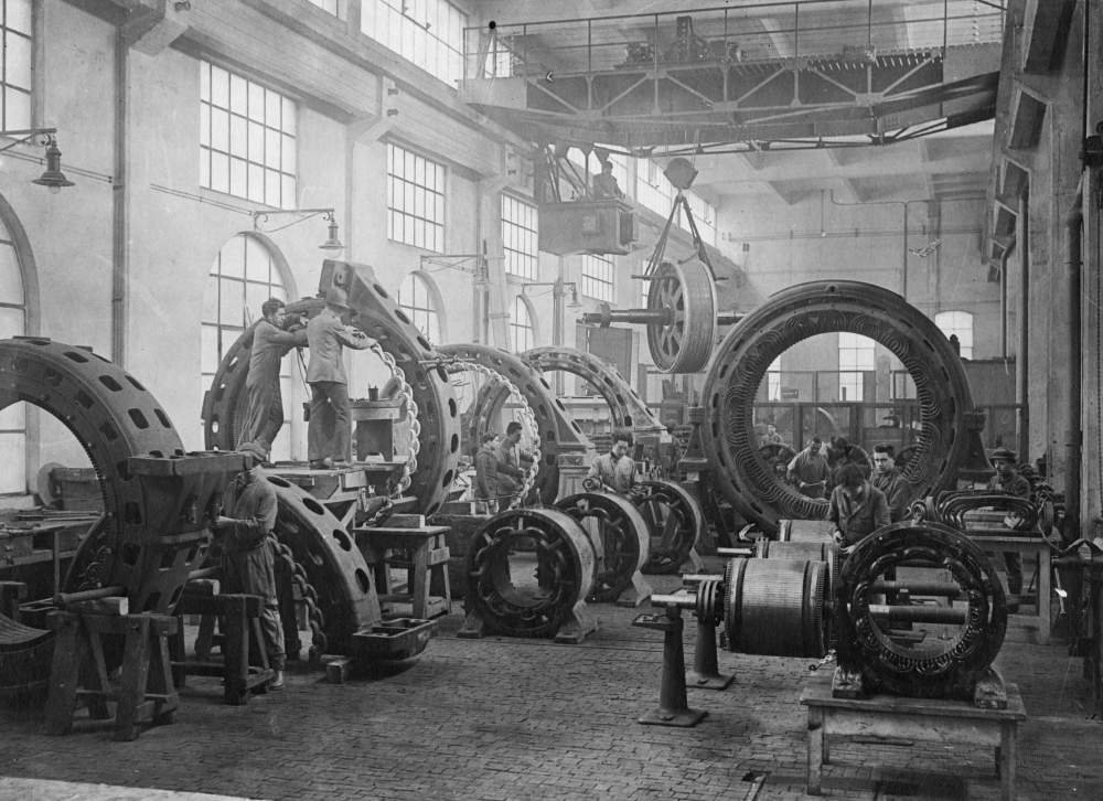 Stabilimento Elettrotecnico Ansaldo di Cornigliano Ligure - lavorazione statori e rotori - 1921 Credits: Fondazione Ansaldo Archivio: Fondazione Ansaldo (Gruppo Finmeccanica) Città: Genova
