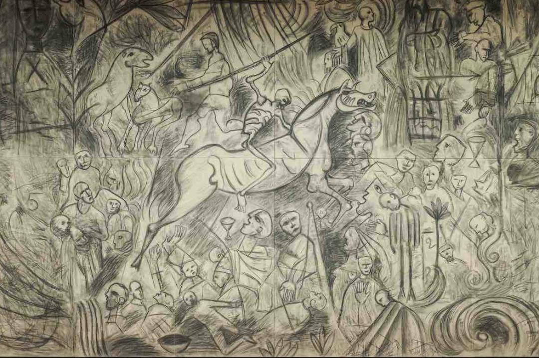 L’artista campano ha firmato le scene e il sipario per il capolavoro verdiano tratto dalla tragedia di Shakespeare e allestito al Teatro del Maggio Fiorentino con la regia di Mario Martone. Tra oscure figure apocalittiche, spettri, fantasmi e rimandi al «Trionfo della morte» e ai conflitti di oggi, non manca un piccolo richiamo alla speranza
