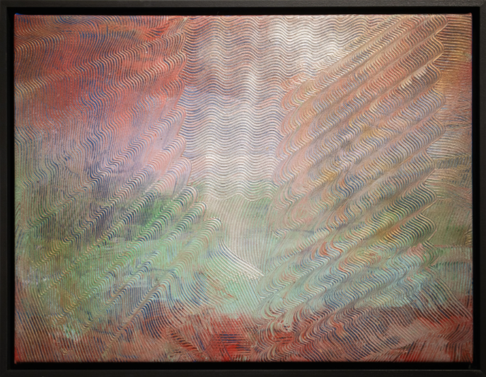 Negli stessi anni, la fotografia non gli basta più. Cowans comincia a sperimentare la pittura come estensione della sua ricerca visiva. All’inizio lavora su grandi fogli distesi sul pavimento, spostando pigmenti con pettini, bastoncini, trapani elettrici, oggetti trovati, superfici di cristallo decorate. Stratifica, raschia, spinge, lancia il colore. Non cerca forme riconoscibili: cerca vibrazioni, profondità, movimento. La pittura diventa materia viva, quasi scultorea, capace di interagire con lo spazio e con chi la osserva. «Per me non c’è differenza tra fotografia e pittura. È sempre la tua comunicazione con la forma. È la stessa corda che devi toccare». Questo approccio fa dialogare luce, colore e materia, memoria e percezione.