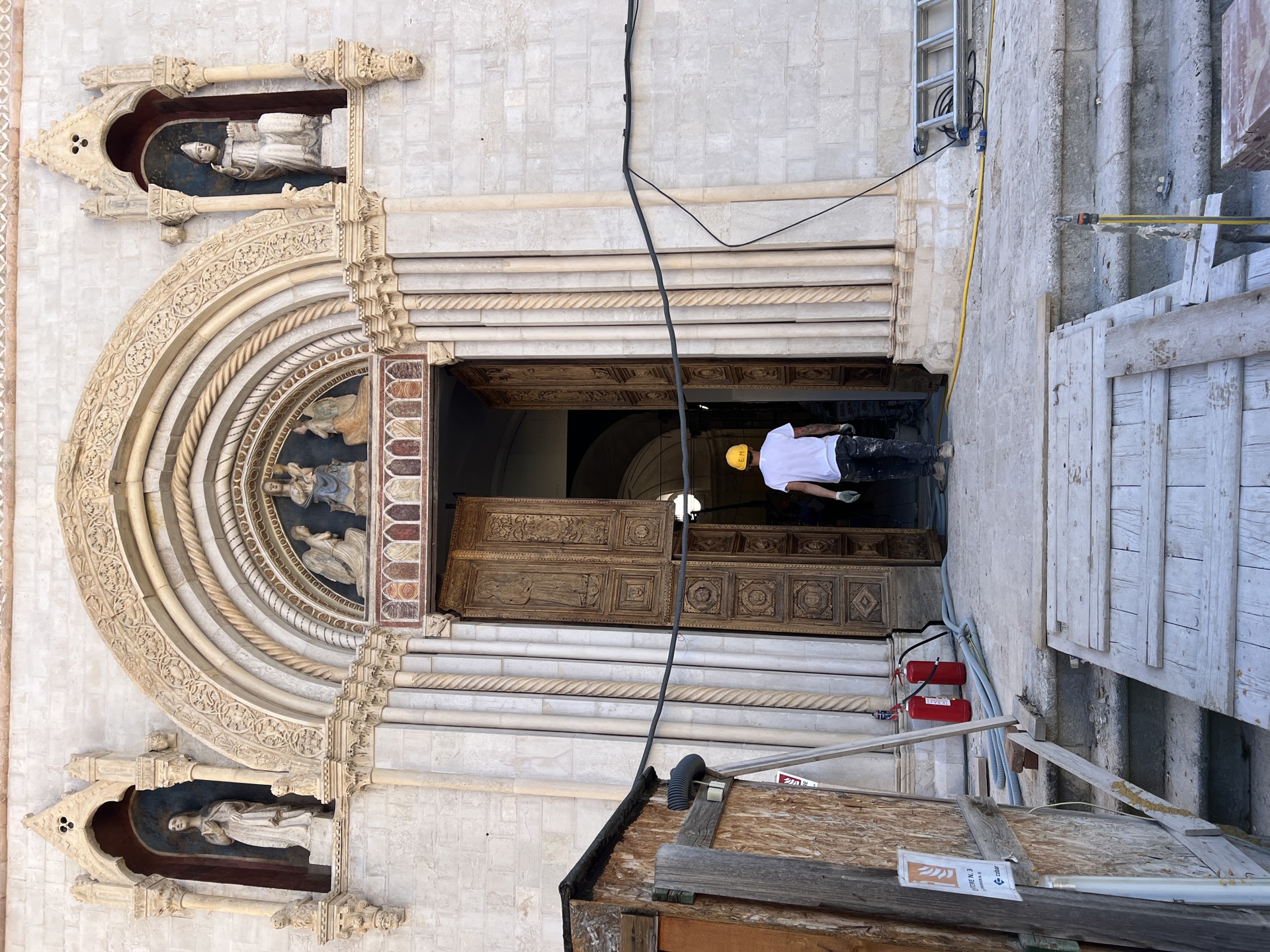 La basilica di San Benedetto a Norcia prossima a fine lavori, il portale. Foto: architetto ingegnere Luigi Trincia, ispettore di cantiere