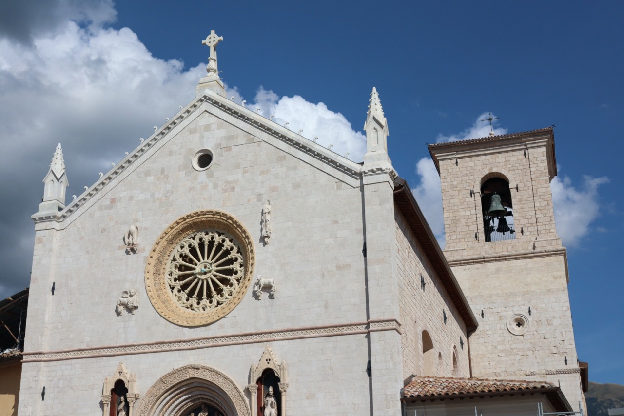 La basilica di San Benedetto a Norcia a fine agosto 2025. Foto: Stefano Miliani