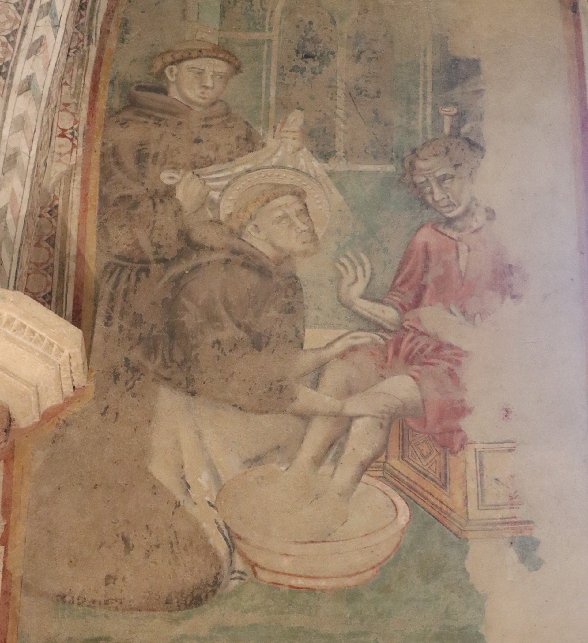Cristoforo di Bindoccio e Meo di Pero, «Francesco lava i piedi a un lebbroso», XIV secolo, Pienza (Siena), San Francesco