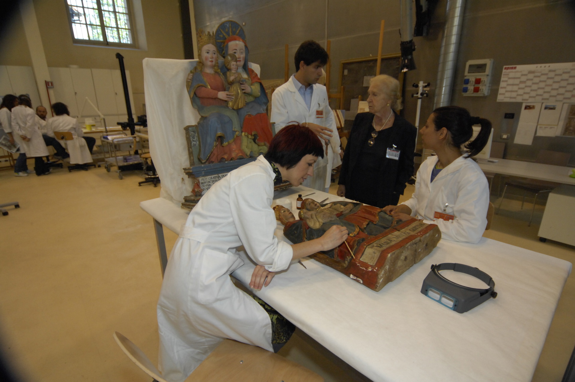 Pinin Brambilla con gli studenti presso i laboratori del Centro Conservazione e Restauro «La Venaria Reale», 2008. © Archivi Centro Conservazione e Restauro «La Venaria Reale», Fondo Archivio Comunicazione