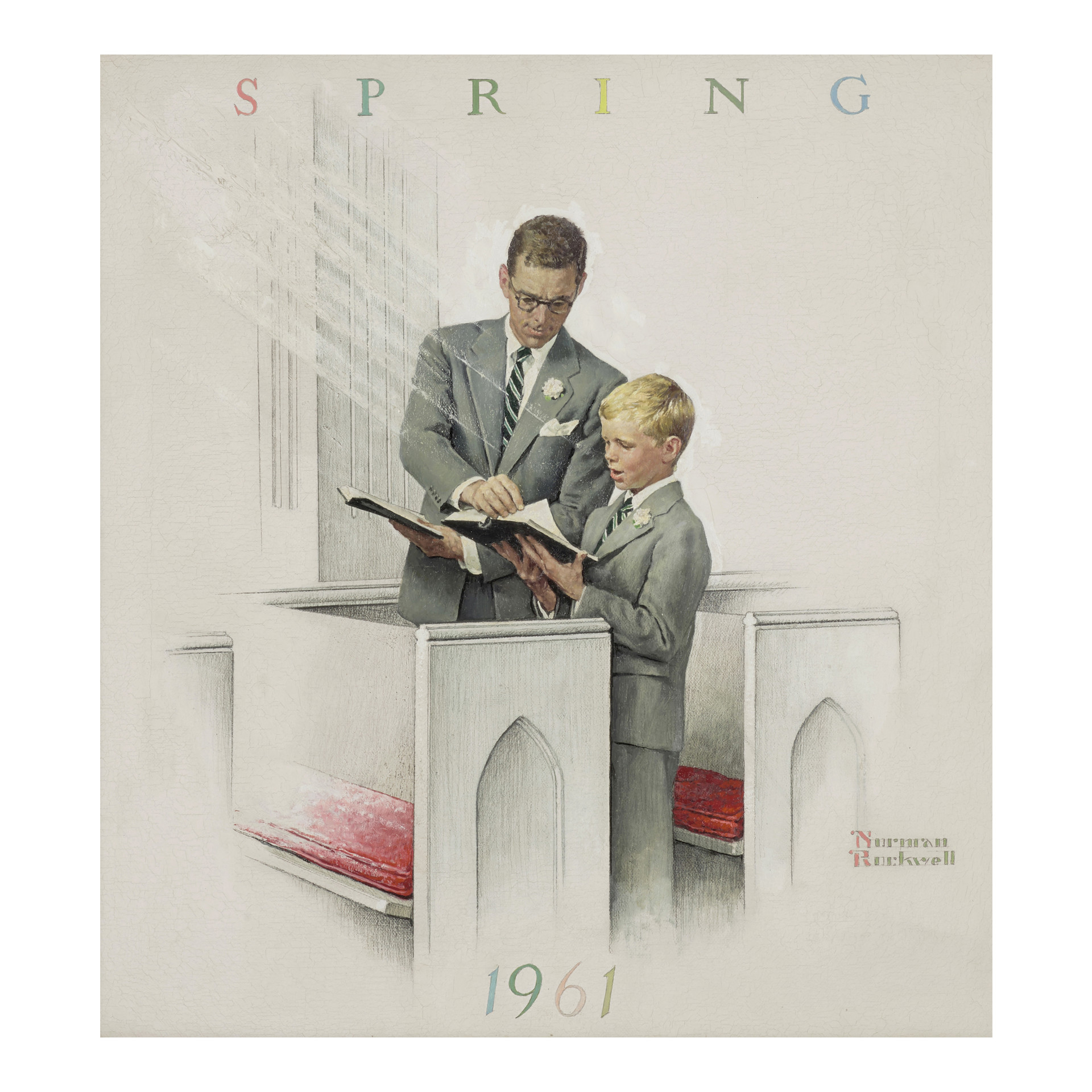 Norman Rockwell,«Father and Boy_ Church», 1961, venduto a 114,800 dollari. Courtesy of Bonhams