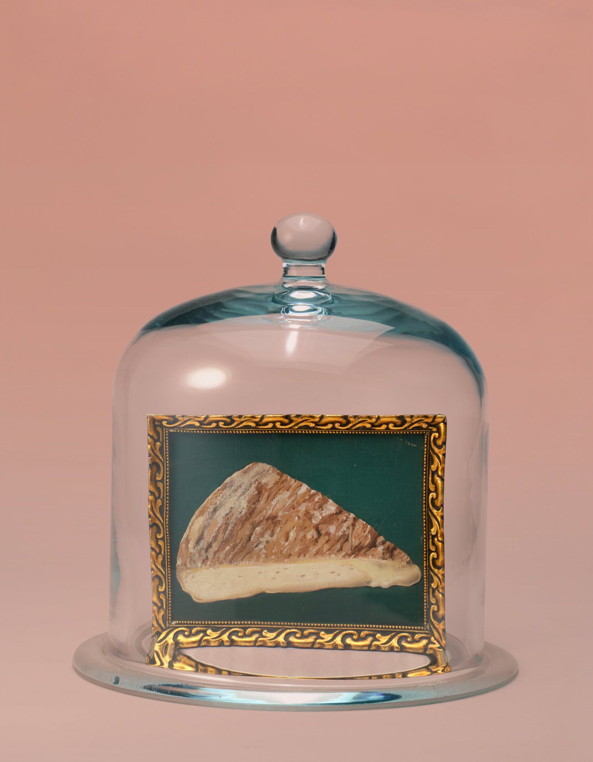 Al centro dell'opera si pone un'immagine estremamente modesta. Una fetta di formaggio, dipinta con tecnica descrittiva, accurata nel colore e nella consistenza, che la rende superficialmente indistinguibile dall'oggetto reale. Tuttavia, Magritte orchestra una vera e propria messa in scena, collocando il piccolo dipinto sotto una cupola di vetro, una campana per formaggi, a sua volta appoggiata su un piedistallo. L'opera cessa immediatamente di essere un semplice quadro per trasformarsi in un oggetto espositivo. La piccolezza della tela viene ingigantita dalla teca che la contiene, forzando lo spettatore alla presa di coscienza che ciò che sta osservando non è formaggio, ma una rappresentazione che si maschera da sostanza.