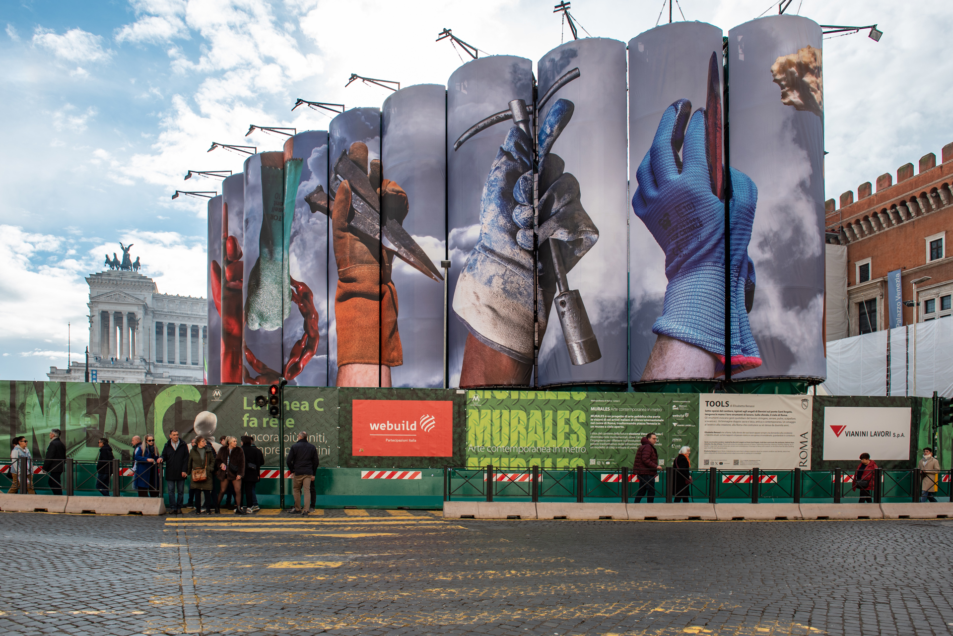 Leggi i suoi articoliA Roma, a piazza Venezia, va in scena il nuovo capitolo di «Murales. Arte contemporanea in metro», il progetto d’arte contemporanea in sei puntate promosso dal consorzio guidato da Webuild e Vianini Lavori, con il patrocinio di Roma Capitale e di concerto con le Soprintendenze competenti. Sei artisti, selezionati da un Comitato Scientifico composto da GNAM, Galleria Borghese, MAXXI e Palazzo delle Esposizioni, presentano opere inedite che reinterpretano le trasformazioni urbane in corso e il rapporto tra infrastrutture, storia e futuro della città. Curato da Spazio Taverna e ispirato ai modelli internazionali che coniugano arte e opere pubbliche, il progetto invita a riflettere sull’evoluzione delle città e sul ruolo rigenerativo dei cantieri, riallacciandosi alla lunga tradizione dell’arte murale come narrazione collettiva e civile. La terza installazione, svelata nella giornata di venerdì 5 dicembre, è Tools di Elisabetta Benassi, dedicata al lavoro di maestranze e archeologi impegnati nella costruzione di una Roma moderna: gli «eroi nascosti» impegnati a trasformare la Capitale.