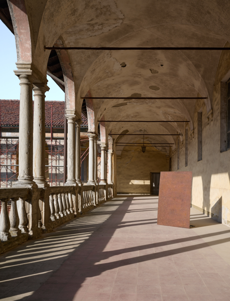 Sullo scalone principale Teresa Prati ha allestito un’opera sonora: «L’Educazione - Ain’t no fun» (tutte le opere sono del 2025) è un adattamento per coro giovanile di un brano del 1992 del rapper Snoop Dogg: il candore del canto a cappella che si diffonde tra le stanze del convento contrasta con il testo della canzone, di carattere crudo, sessista e misogino, il cui messaggio principale è che «non è divertente» (ain’t no fun) avere una donna se non la si può condividere con gli amici. Quella dell’artista non è una provocazione gratuita: l’opera nasce da approfondite ricerche sulla vita nel riformatorio minorile, in cui l’ambiente coercitivo esclusivamente maschile portava i giovani detenuti ad atti di abuso e nonnismo, il tutto coperto dalla facciata di un luogo sacro.
