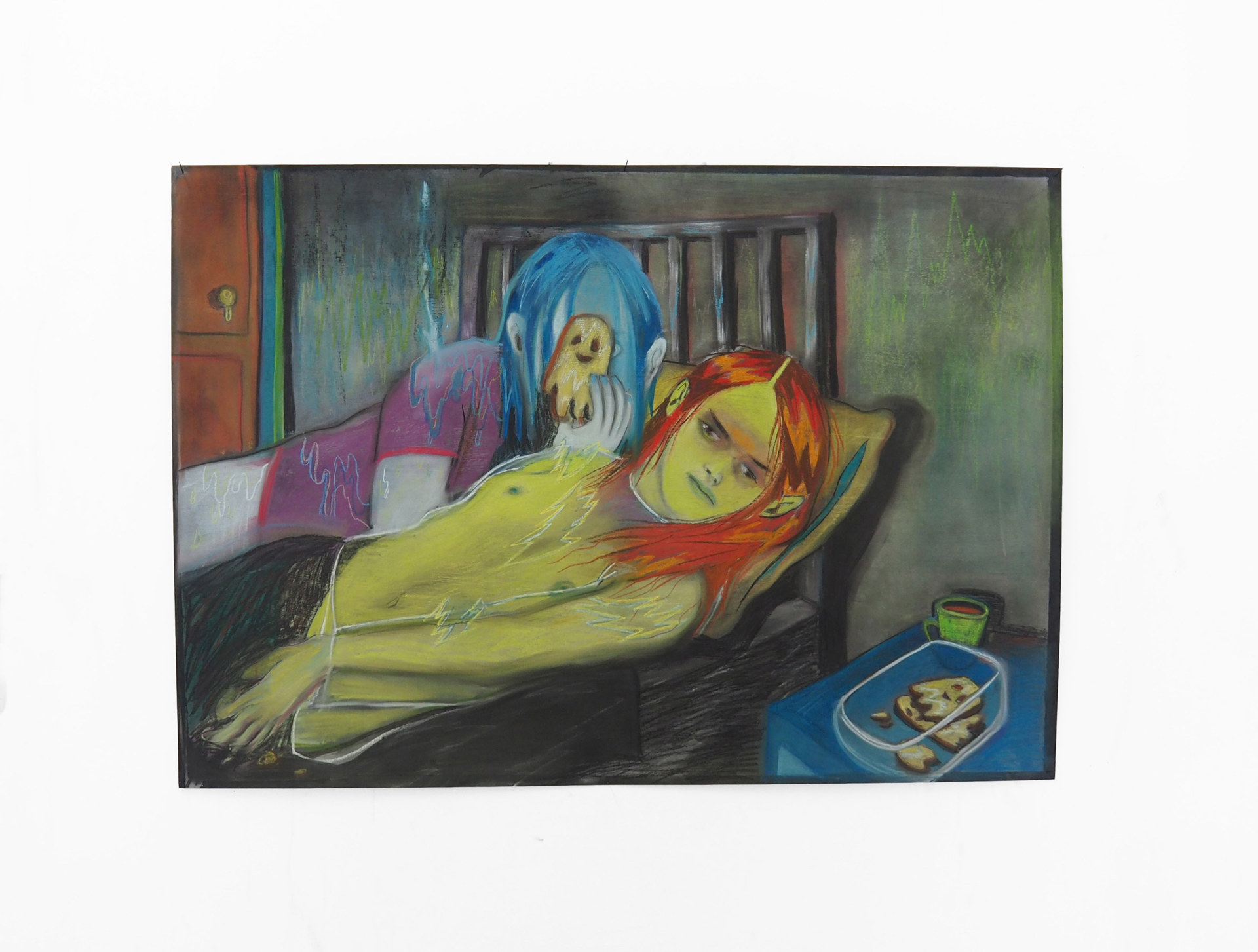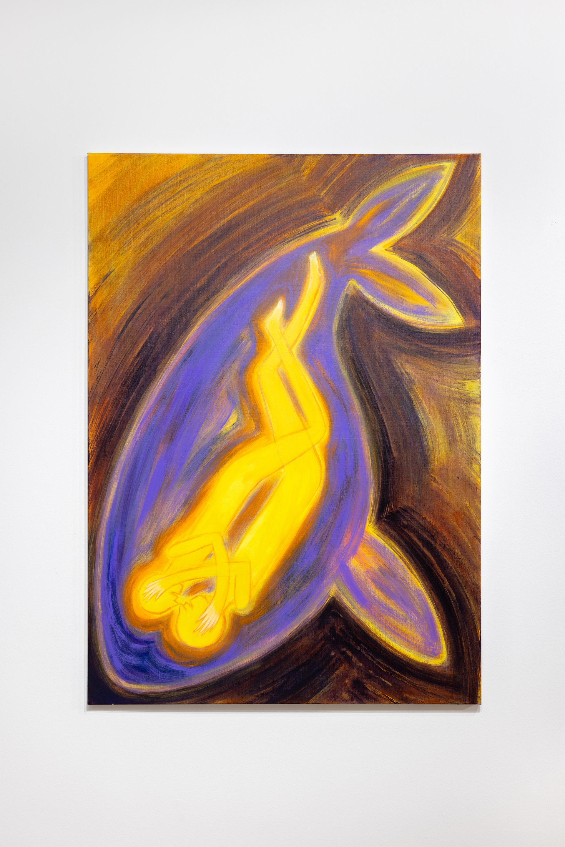 Ariel Schlesinger apre il percorso con «The most interesting plants grow in the shade» (2024), una forbice che diventa chiave e innesca un paradosso poetico capace di scardinare la funzionalità degli oggetti. Con «Love (Whale)» (2023), Cecilia Granara costruisce invece un universo sensuale e mitico, dove figure innamorate si abbandonano al mare all’interno di balene coloratissime.