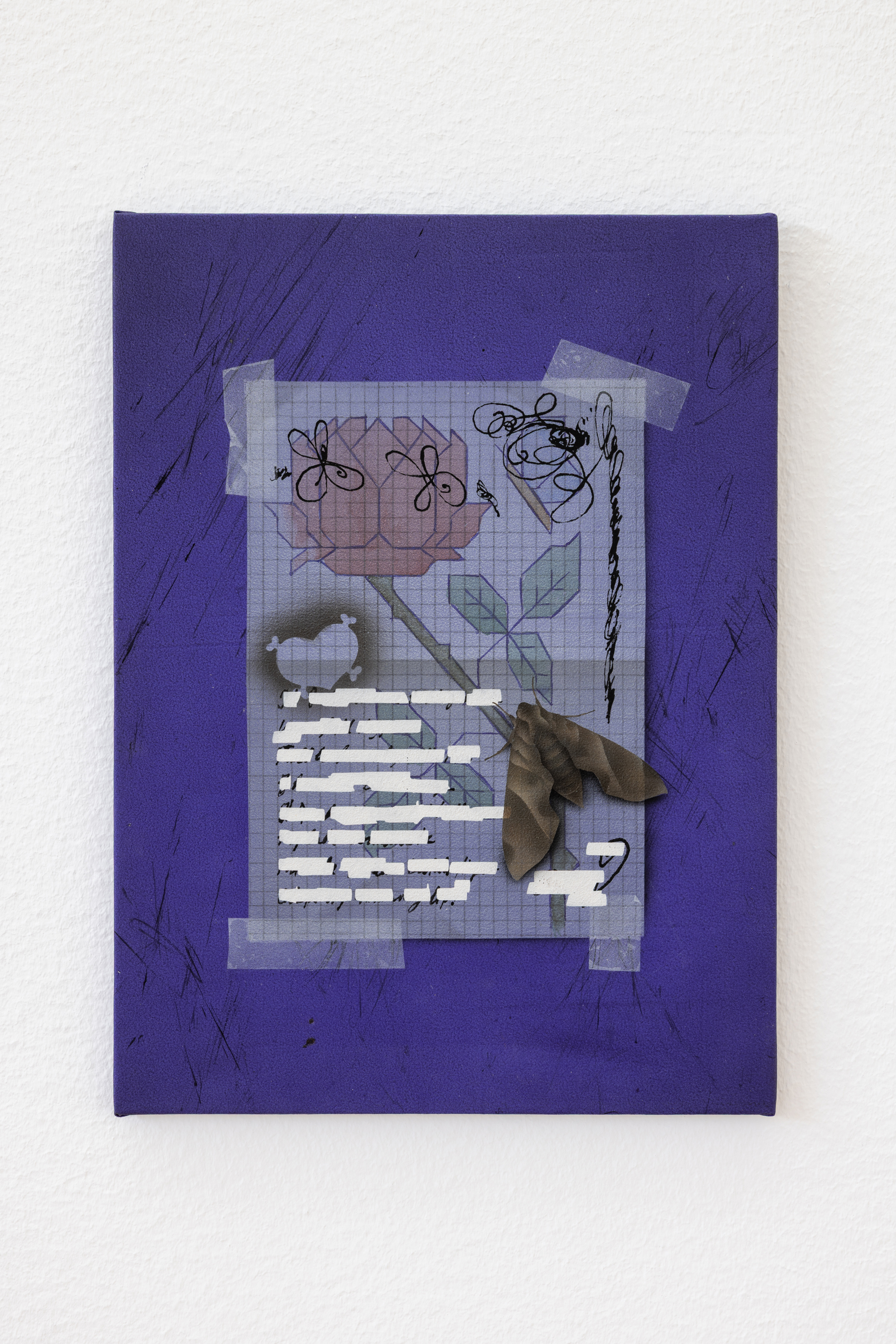 L’adolescenza come stato mentale ricorrente è al centro de «L’estensione dell’alba» (2022) di Giuliana Rosso, mentre Landon Metz, con «Untitled» (2024), restituisce un’esperienza pittorica rarefatta, modulare, in equilibrio tra gesto e assorbimento del colore. Valerio Nicolai spinge il linguaggio pittorico verso il cortocircuito concettuale con «Ritorneremo (trovata di portafogli)» (2025), serie di tele piegate a imitare portafogli smarriti. Chiude Viola Leddi, che in «Senza titolo» (2025) incrina l’ordine di una griglia cartesiana trasformandola in un fragile terreno emotivo.