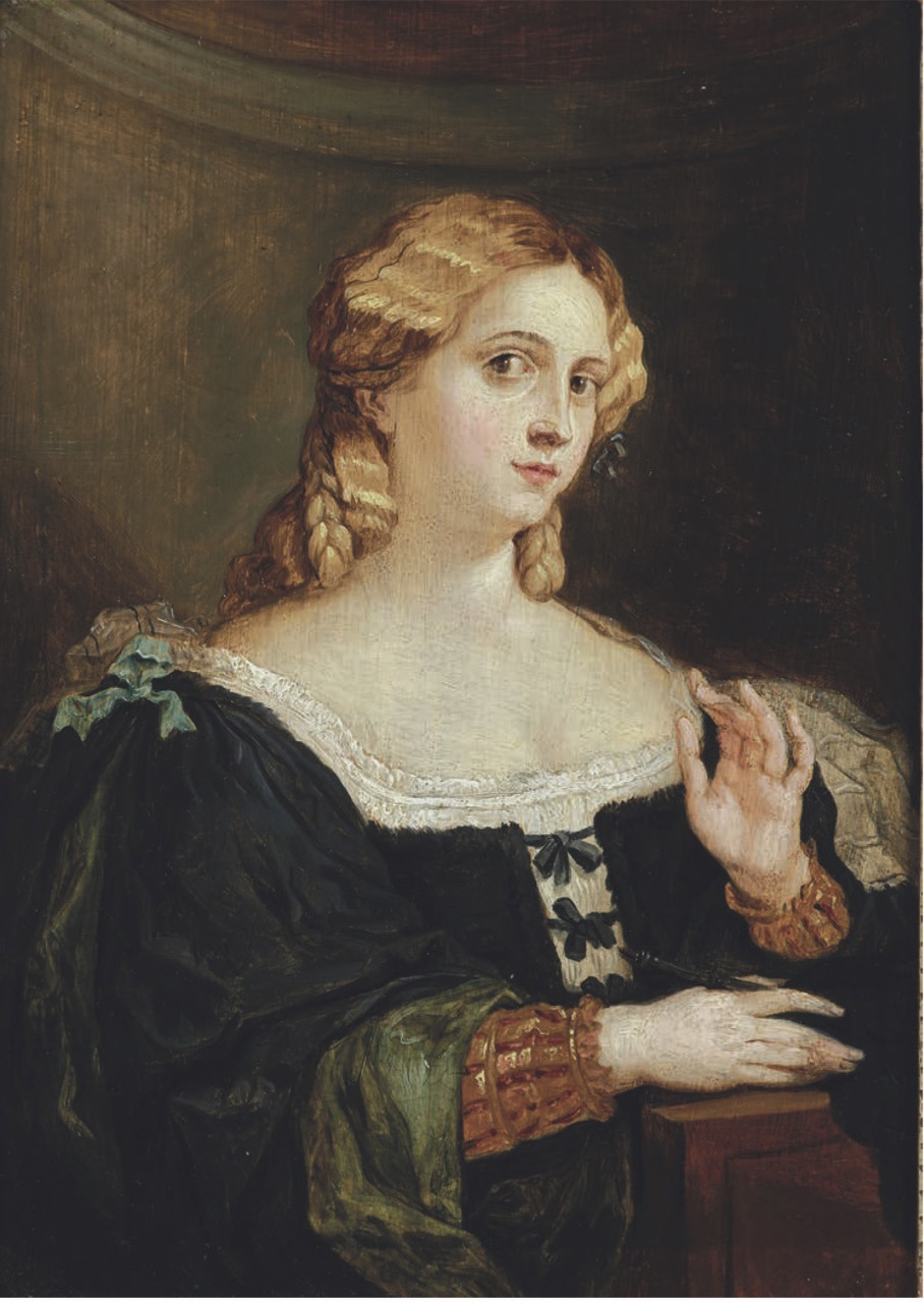 David Teniers il Giovane prodotto una copia del «Ritratto di donna con ventaglio» di Palma il Vecchio