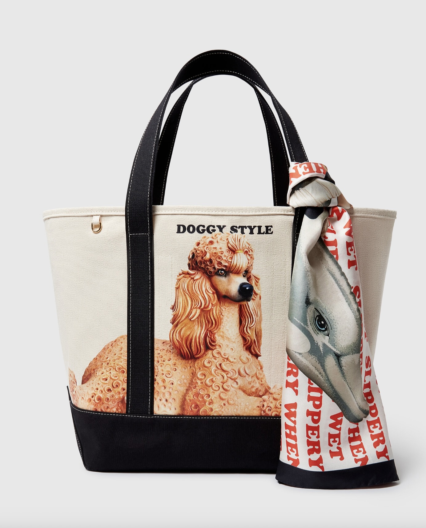 Leggi i suoi articoliLanciata ufficialmente sul mercato nel gennaio 2026, la capsule per la stagione Primavera nata dalla collaborazione tra Stella McCartney e Jeff Koons si costruisce come un lavoro sul linguaggio, l’immagine e la superficie, più che come un semplice esercizio di stile. Slippery When Wet non è soltanto il titolo evocativo o lo slogan della collezione: è una frase operativa, un elemento testuale che attraversa i capi e ne organizza la presenza visiva e simbolica, senza esaurirla. L’espressione affonda le radici nella prima collezione di Stella McCartney (del 2001), quando appariva come segnale ironico e allusivo, sospeso tra avvertimento e promessa. Riattivarla oggi significa rimettere in circolazione una frase che ha perso l’innocenza dell’esordio per acquisire una densità diversa. Slippery When Wet diventa una formula che parla di corpo, superficie, desiderio e instabilità, senza mai fissarsi in un significato univoco. È una frase che scivola, letteralmente e semanticamente.