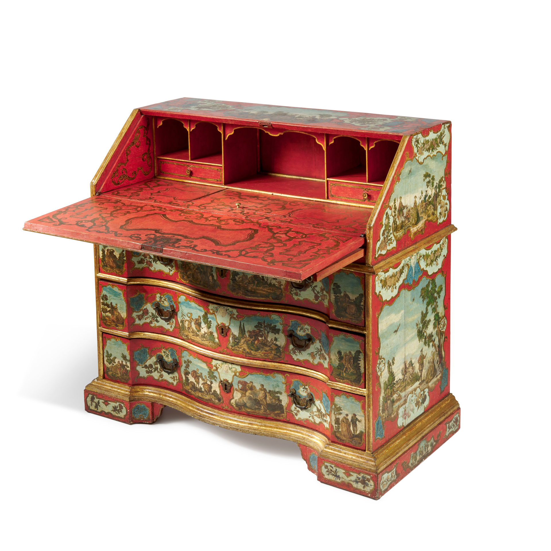 Scrivania italiana con dorature a parti, laccata e in stile arte povera, Venezia, 1750 circa